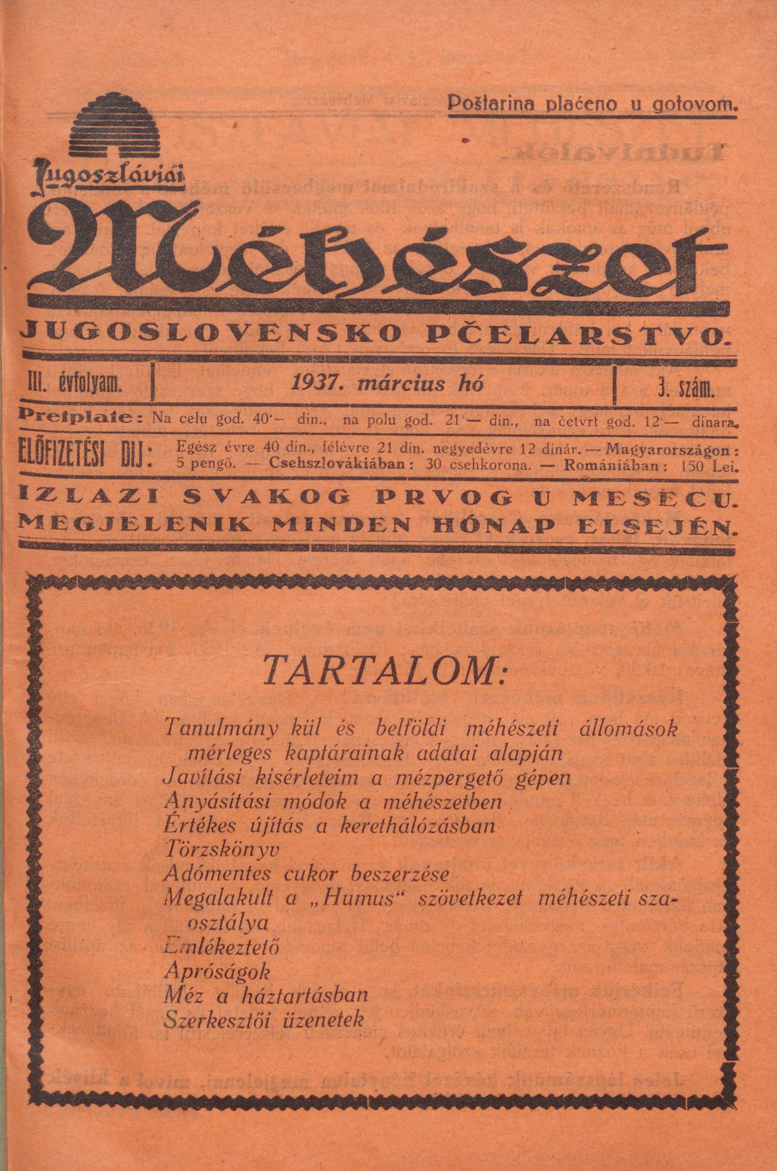 Jugoszláviai méhészet, 3. évf. 1937. március 1. 3. sz.