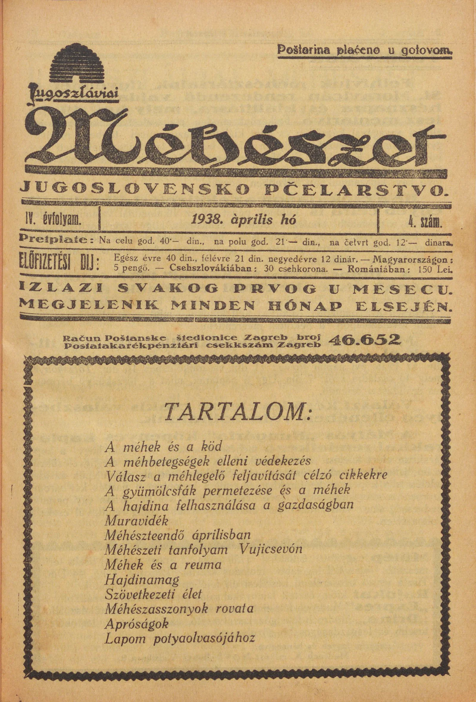 Jugoszláviai méhészet, 4. évf. 1938. április 1. 4. sz.