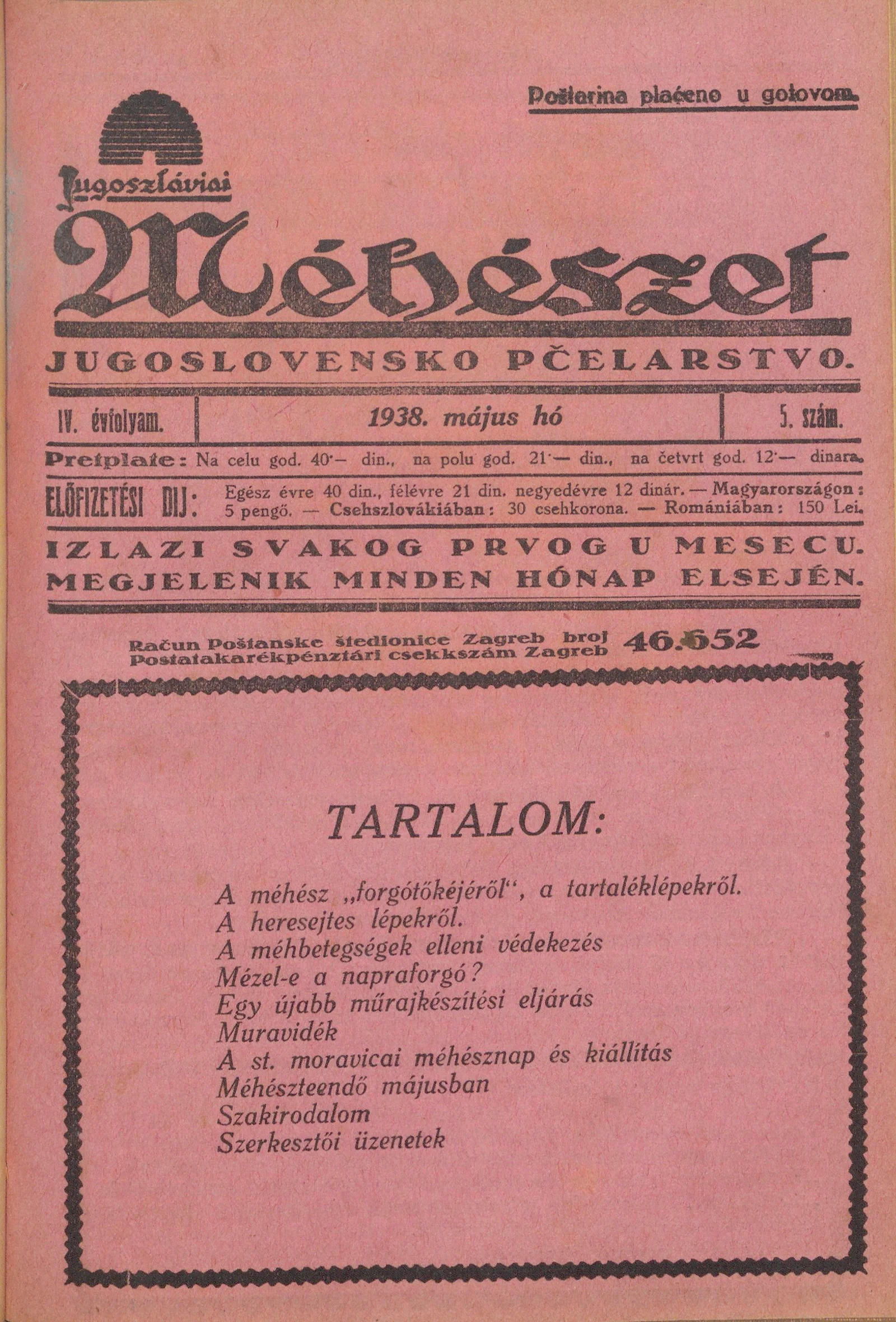 Jugoszláviai méhészet, 4. évf. 1938. május 1. 5. sz.