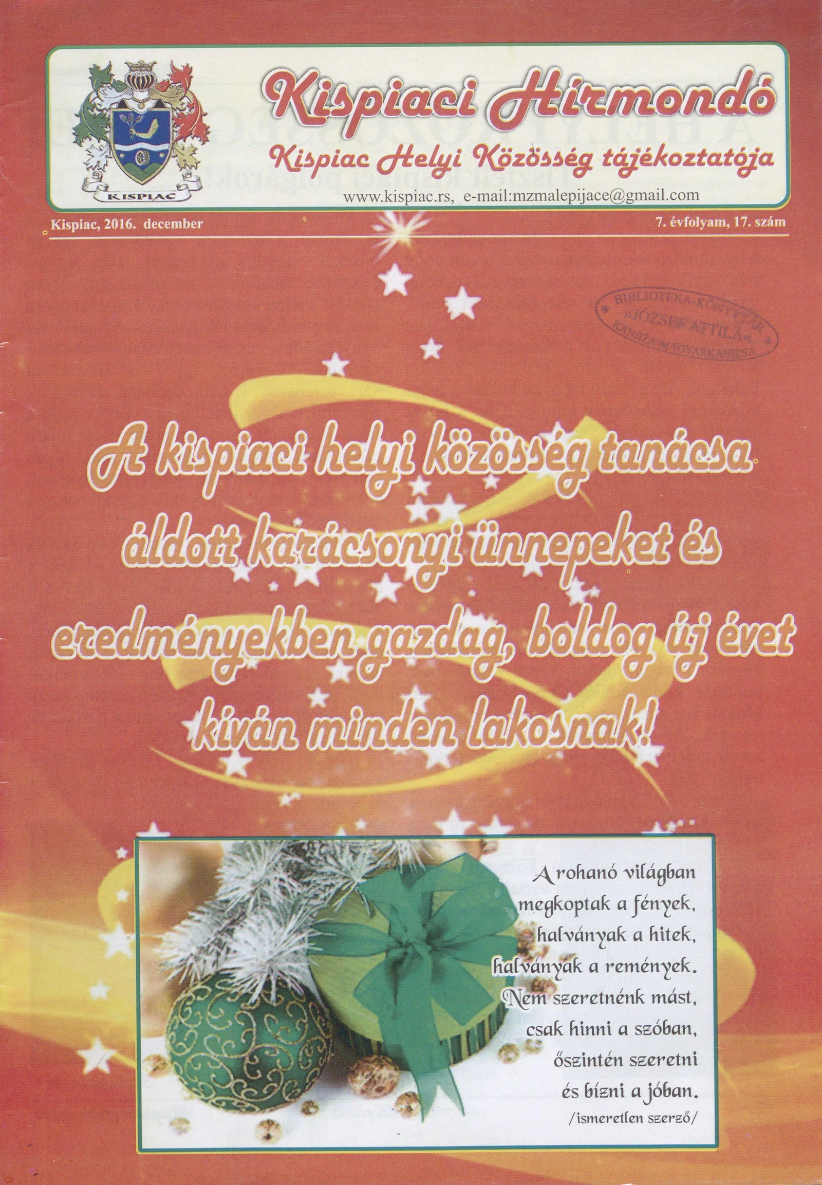 Kispiaci Hírmondó, 7. évf. 2016. december. 17. sz.