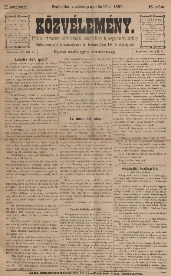 Közvélemény, 2. évf. 1887. április 17. 16. sz.