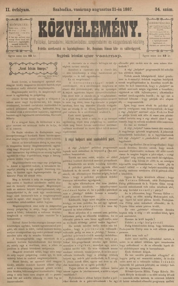 Közvélemény, 2. évf. 1887. augusztus 21. 34. sz.