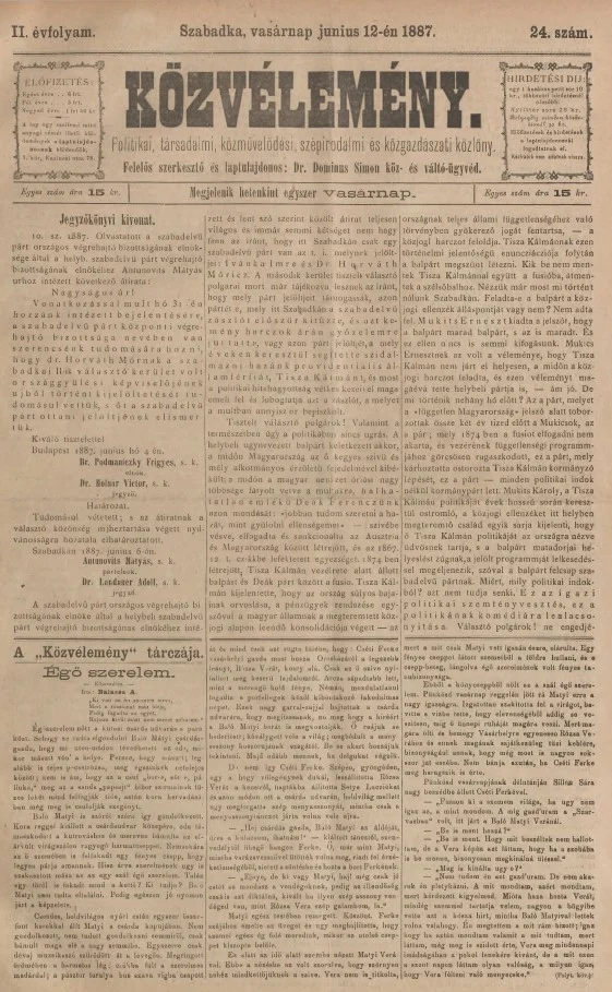 Közvélemény, 2. évf. 1887. június 12. 24. sz.