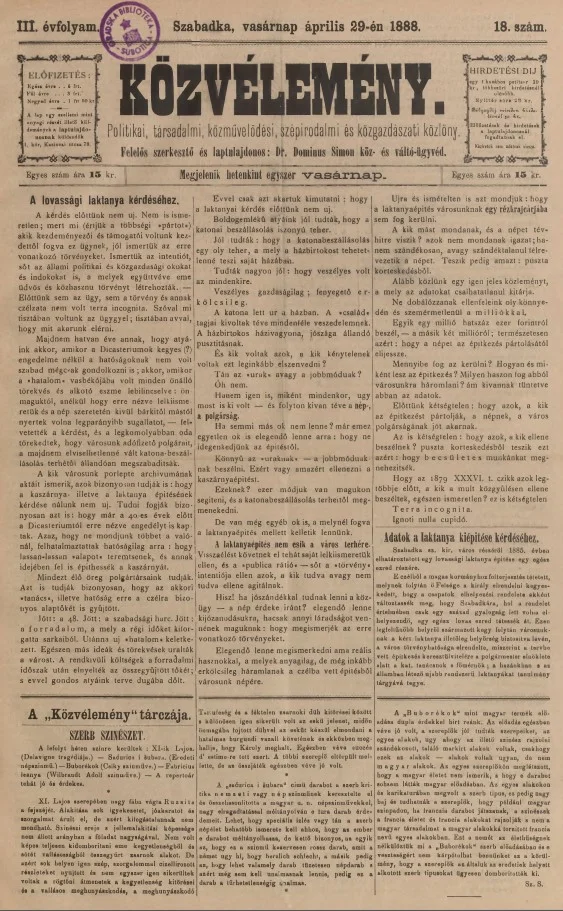 Közvélemény, 3. évf. 1888. április 29. 18. sz.