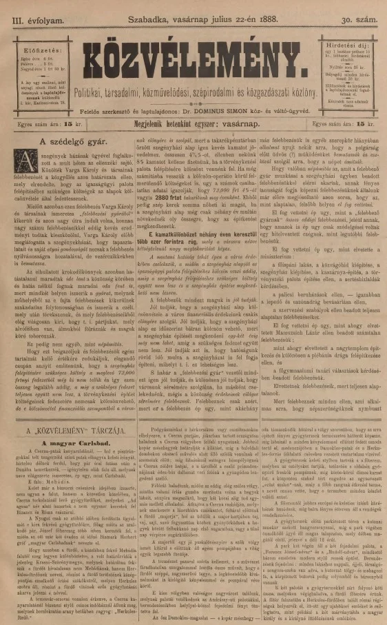 Közvélemény, 3. évf. 1888. július 22. 30. sz.