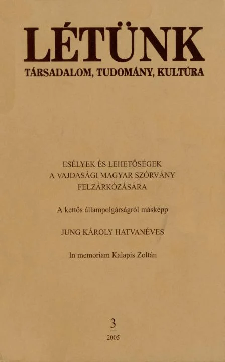 - Esélyek és lehetőségek a vajdasági magyar szórvány felzárkózására. A vajdasági szórvány- és szigetmagyarság helyzetéről5
