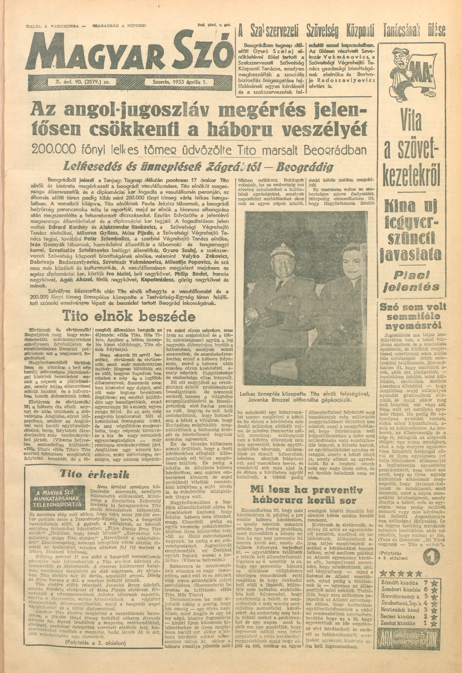 Magyar Szó, 10. évf. 1953. április 1. 90. sz. 1–10. oldal