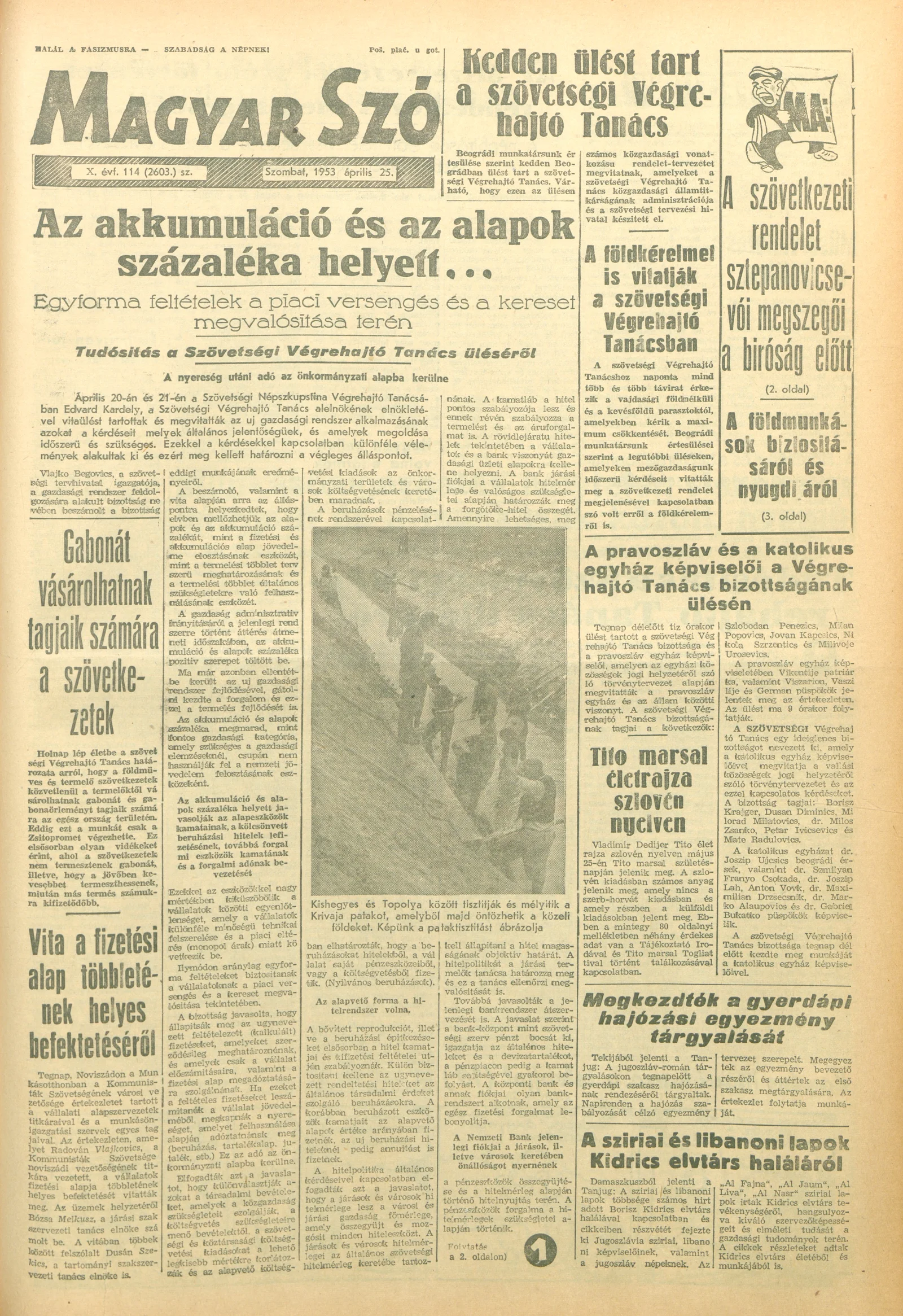 Magyar Szó, 10. évf. 1953. április 25. 114. sz. 1–12. oldal