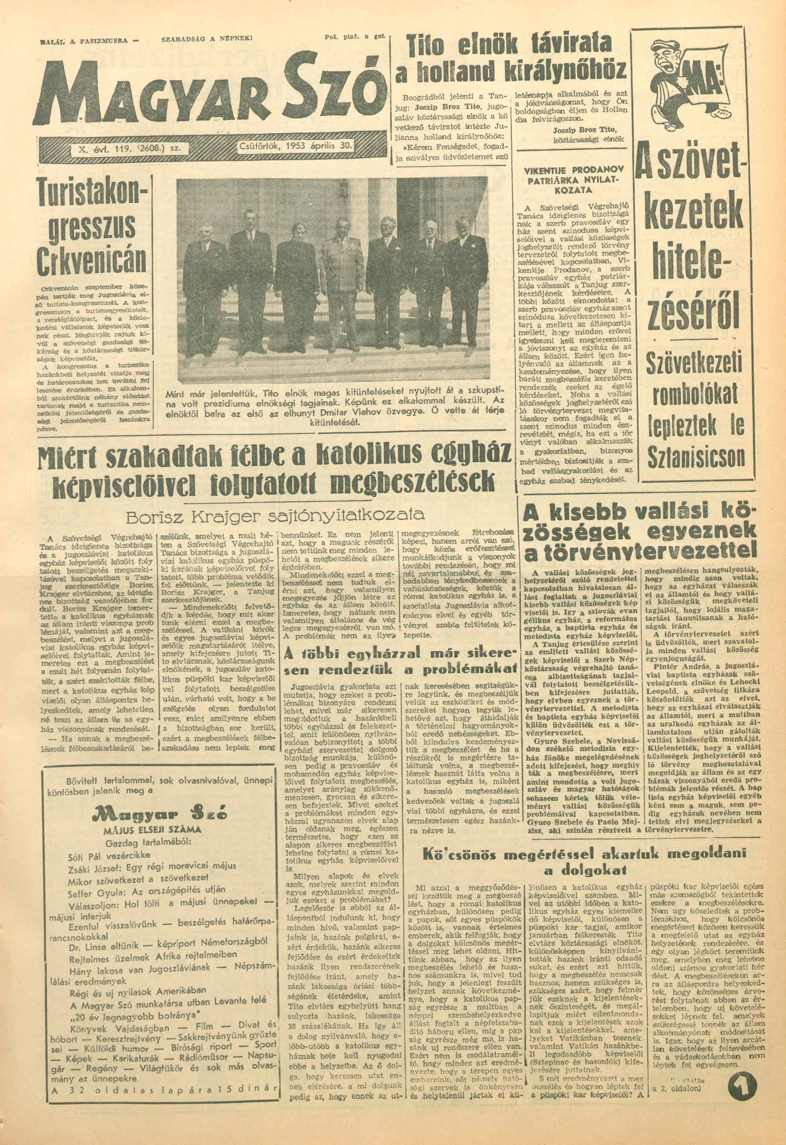 Magyar Szó, 10. évf. 1953. április 30. 119. sz. 1–8. oldal
