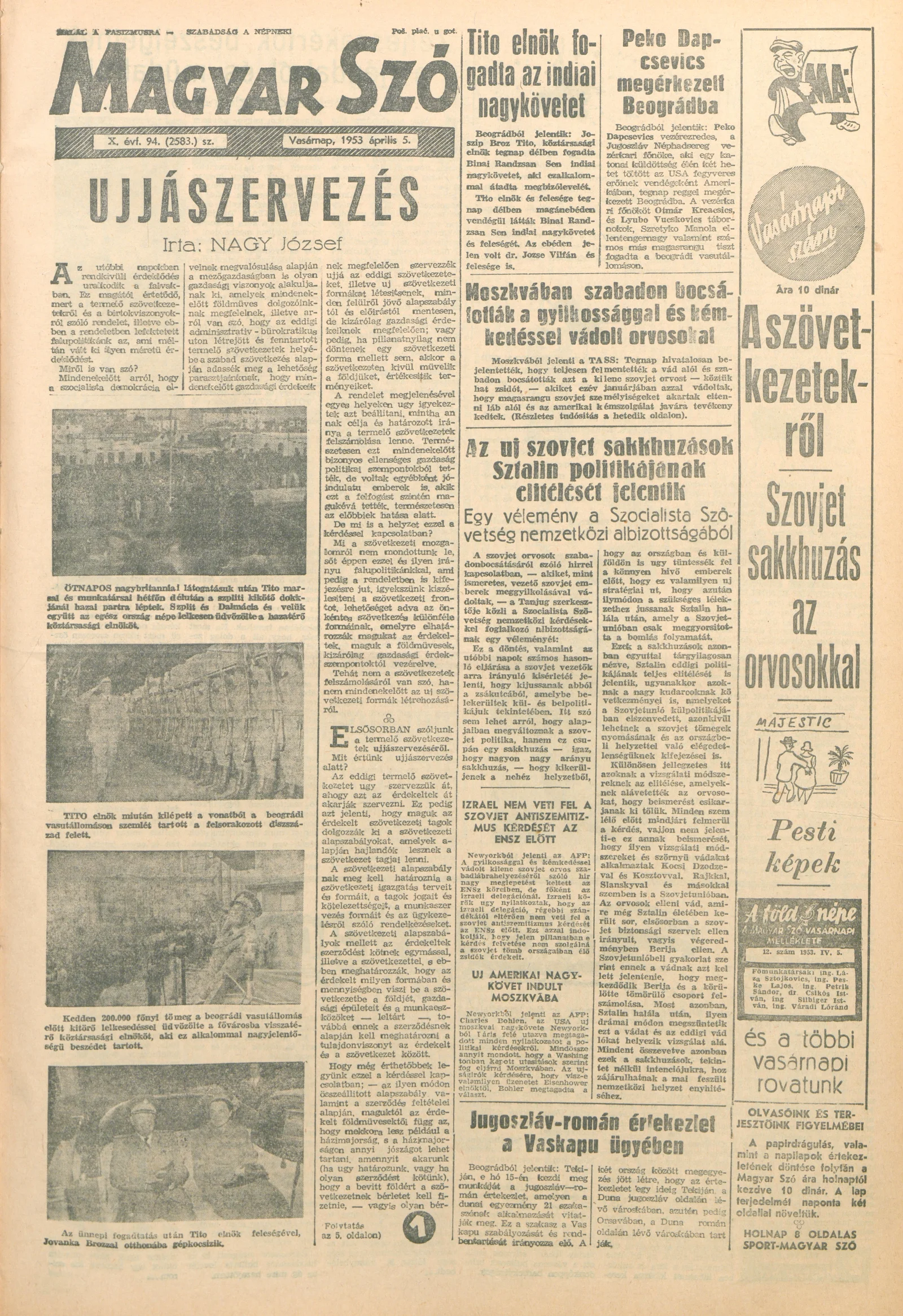 Magyar Szó, 10. évf. 1953. április 5. 94. sz. 1–14. oldal