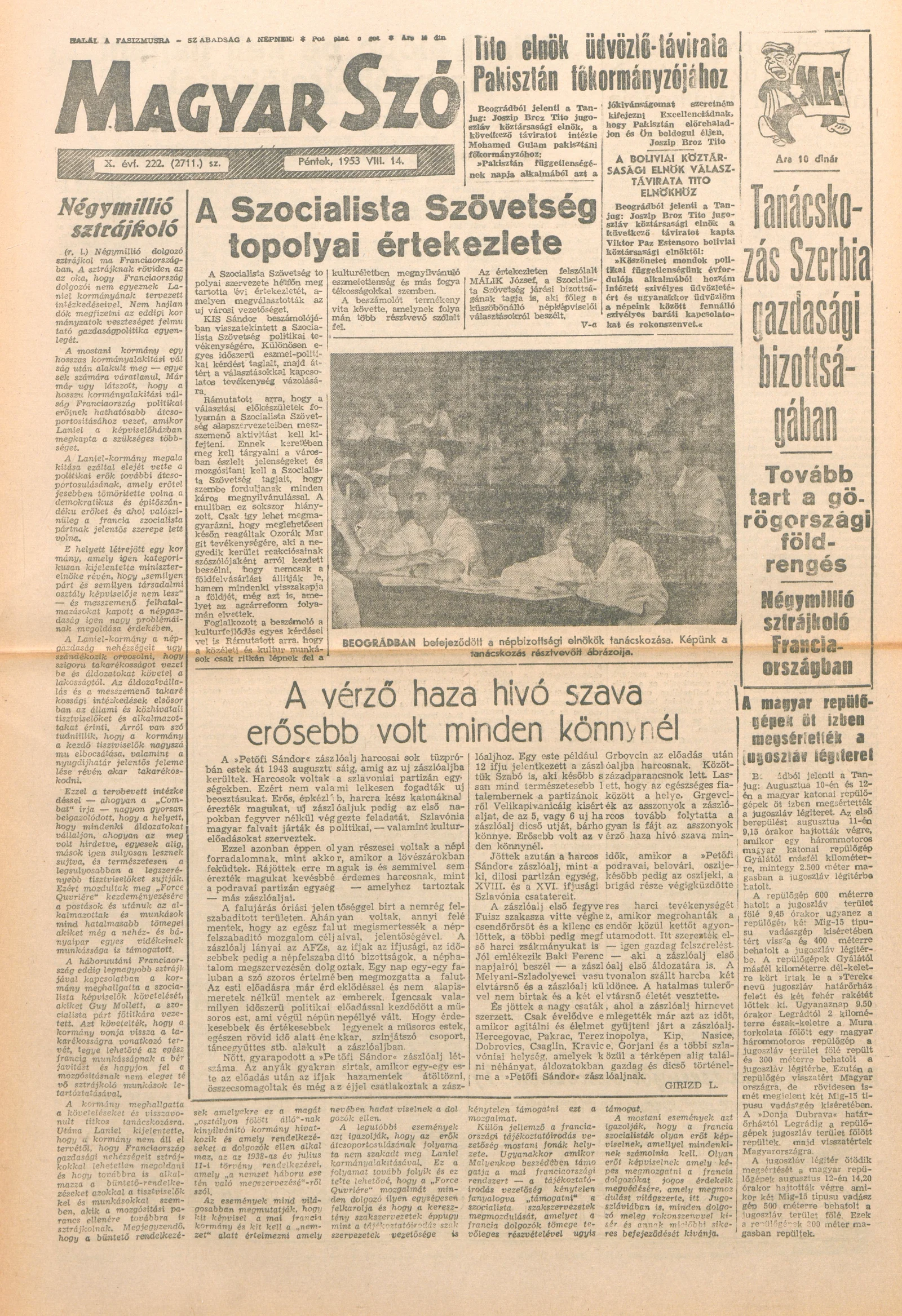 Magyar Szó, 10. évf. 1953. augusztus 14. 222. sz. 1–8. oldal
