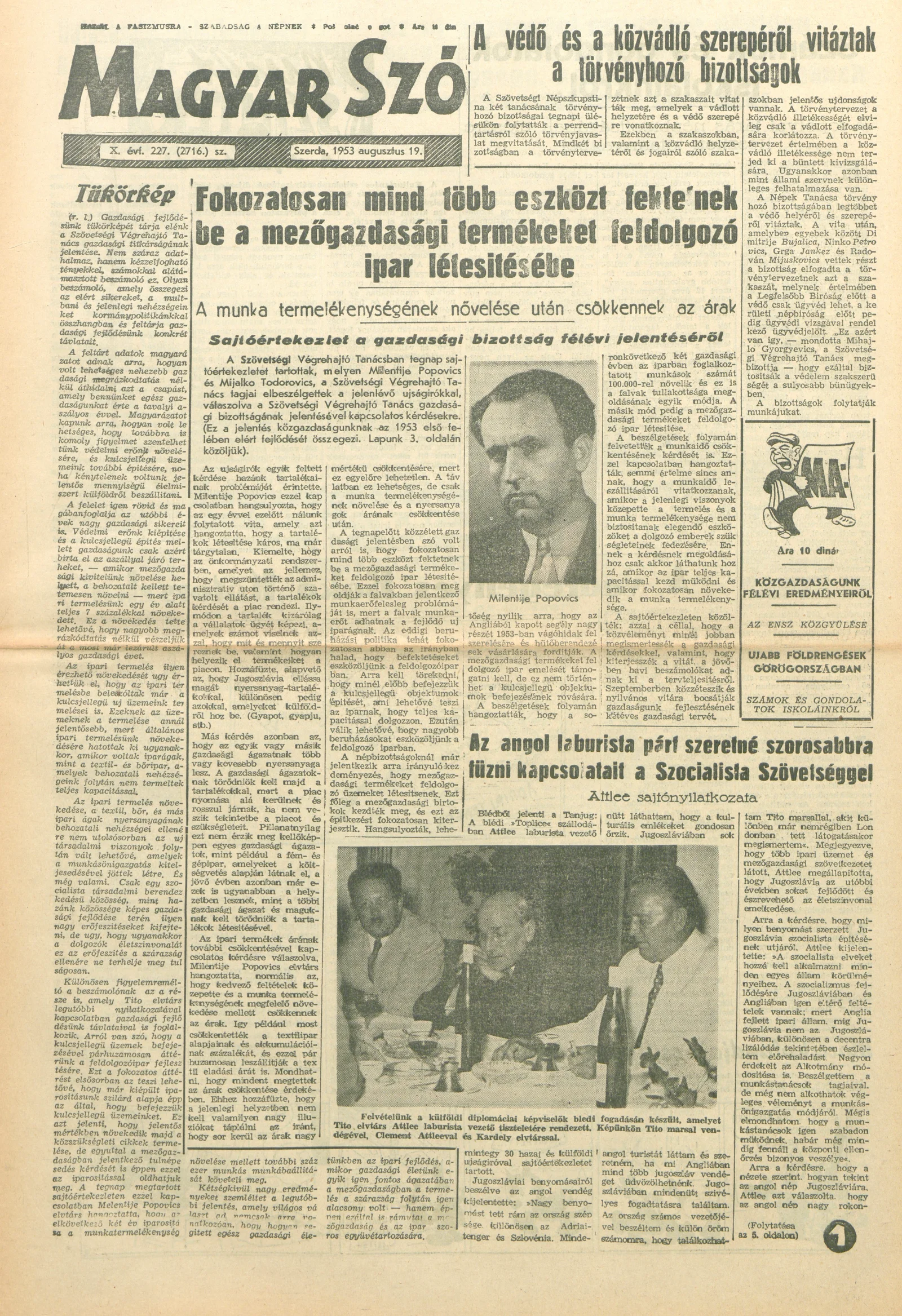 Magyar Szó, 10. évf. 1953. augusztus 19. 227. sz. 1–8. oldal