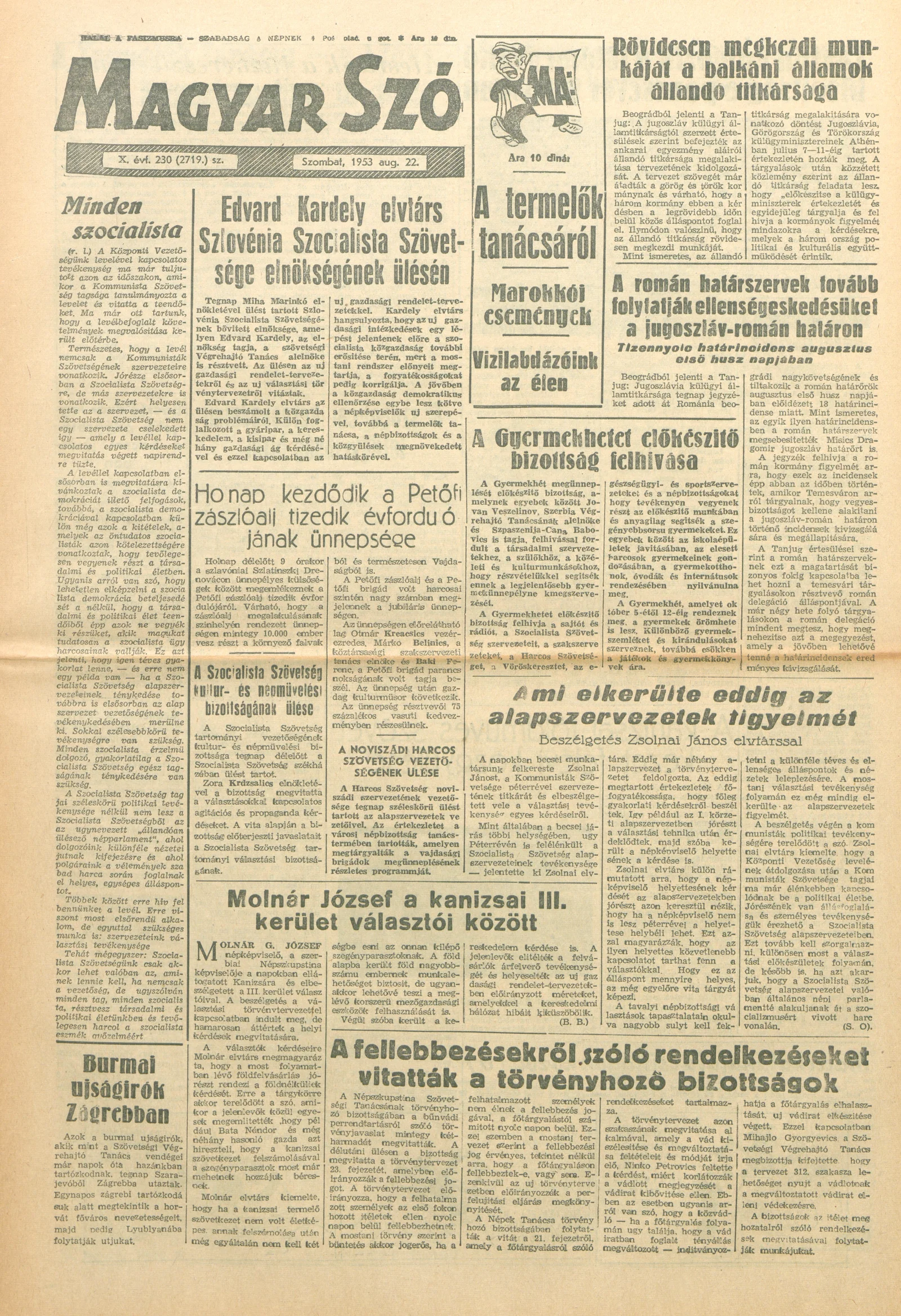 Magyar Szó, 10. évf. 1953. augusztus 22. 230. sz. 1–8. oldal