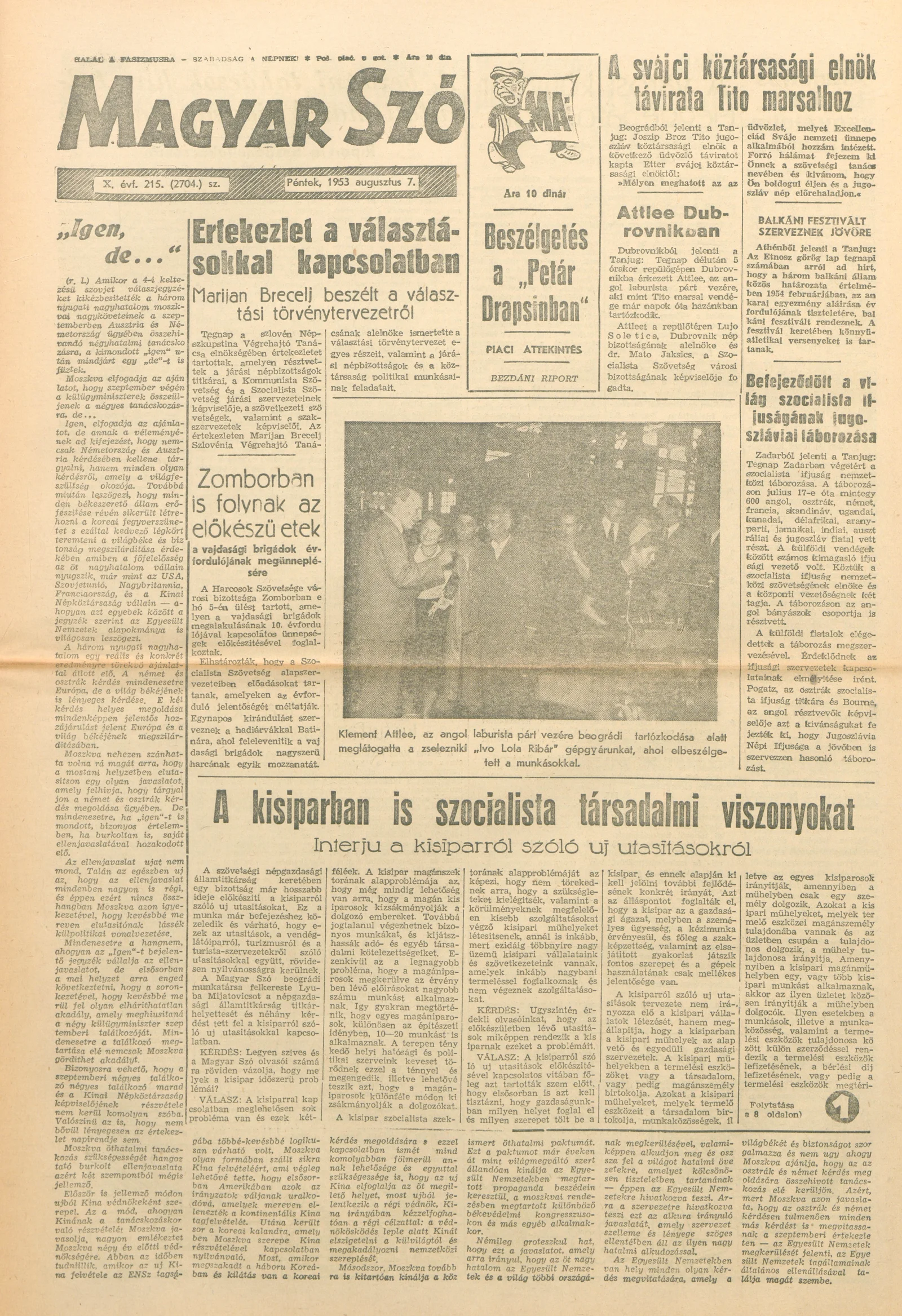Magyar Szó, 10. évf. 1953. augusztus 7. 215. sz. 1–8. oldal
