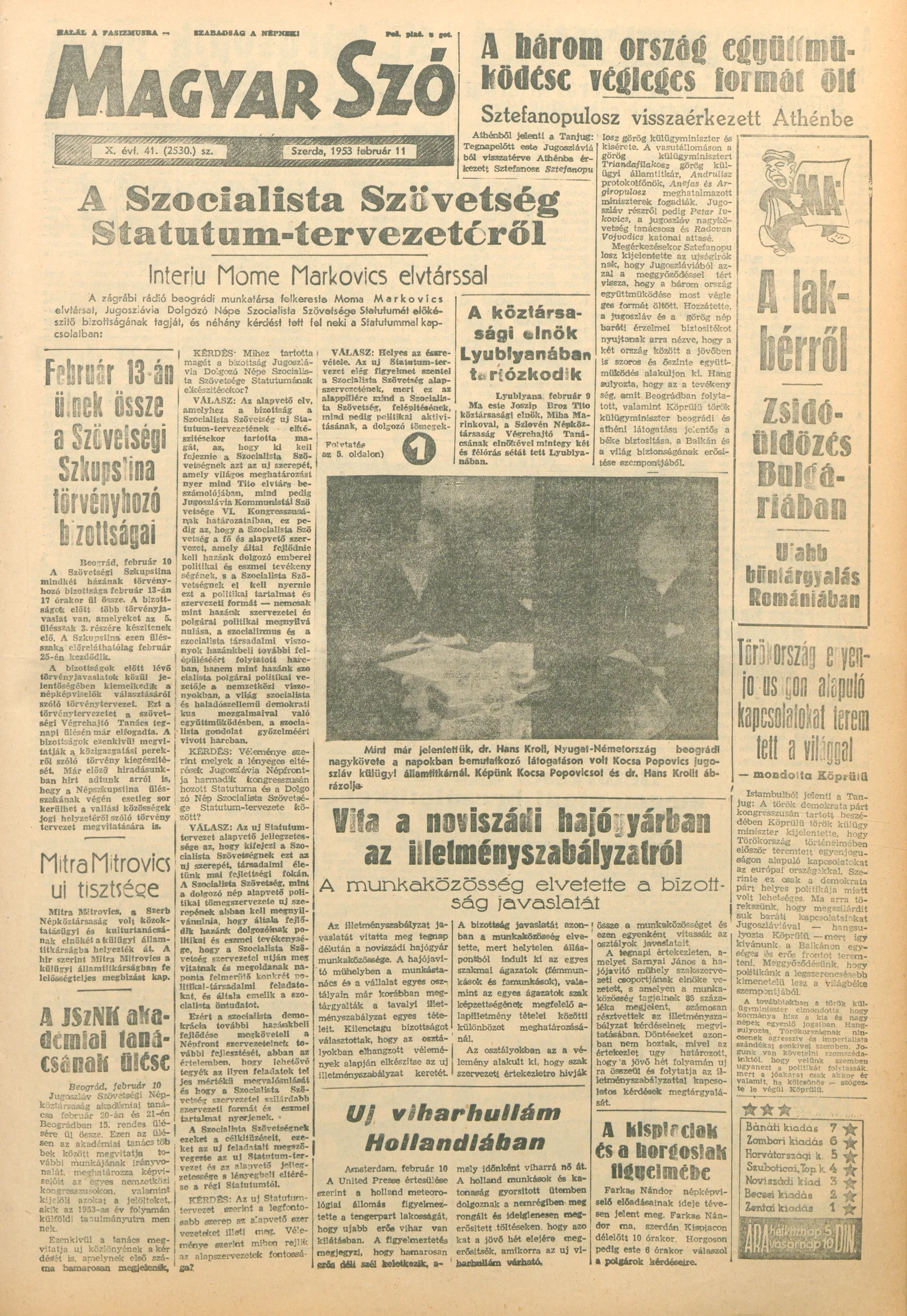 Magyar Szó, 10. évf. 1953. február 11. 41. sz. 1–10. oldal