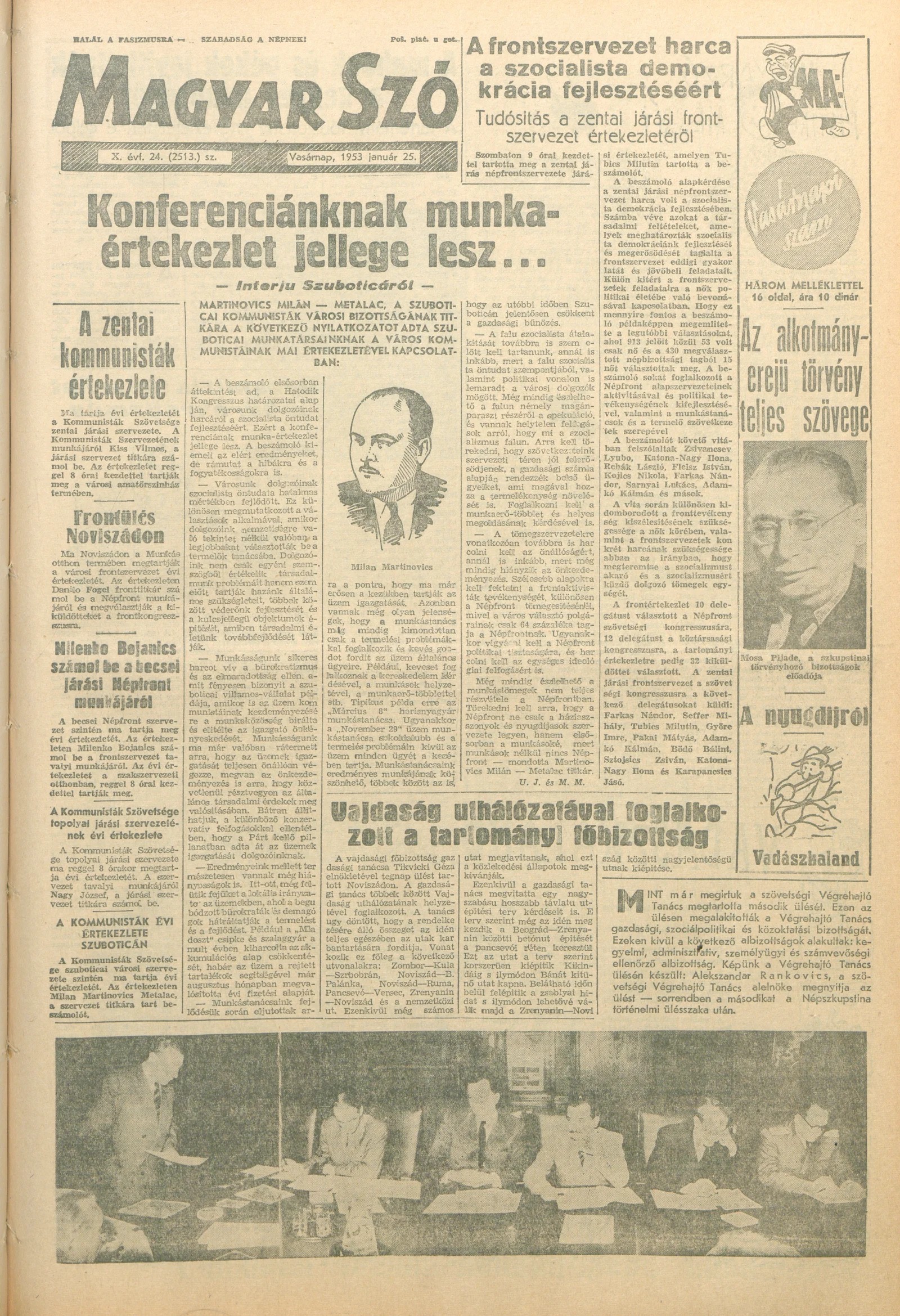 Magyar Szó, 10. évf. 1953. január 25. 24. sz. 1–18. oldal