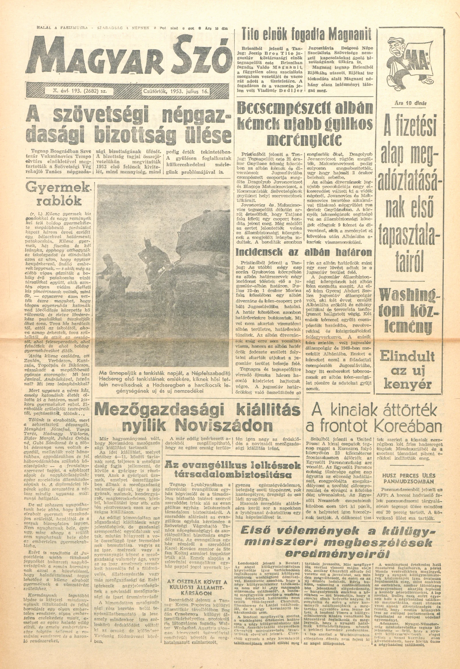 Magyar Szó, 10. évf. 1953. július 16. 193. sz. 1–8. oldal