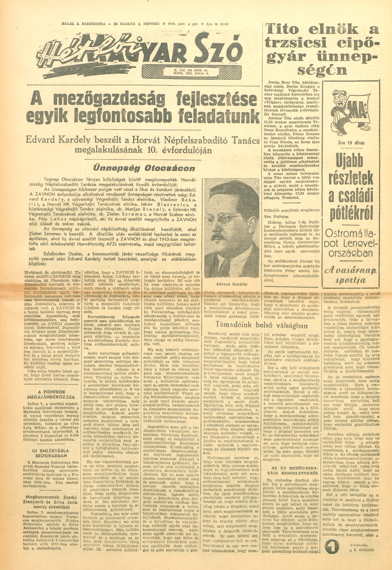 Magyar Szó, 10. évf. 1953. július 6. 184. sz. 1–8. oldal