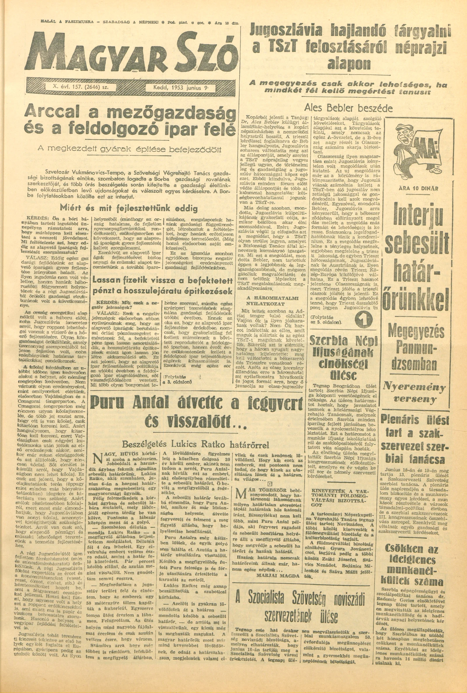 Magyar Szó, 10. évf. 1953. június 9. 157. sz. 1–10. oldal