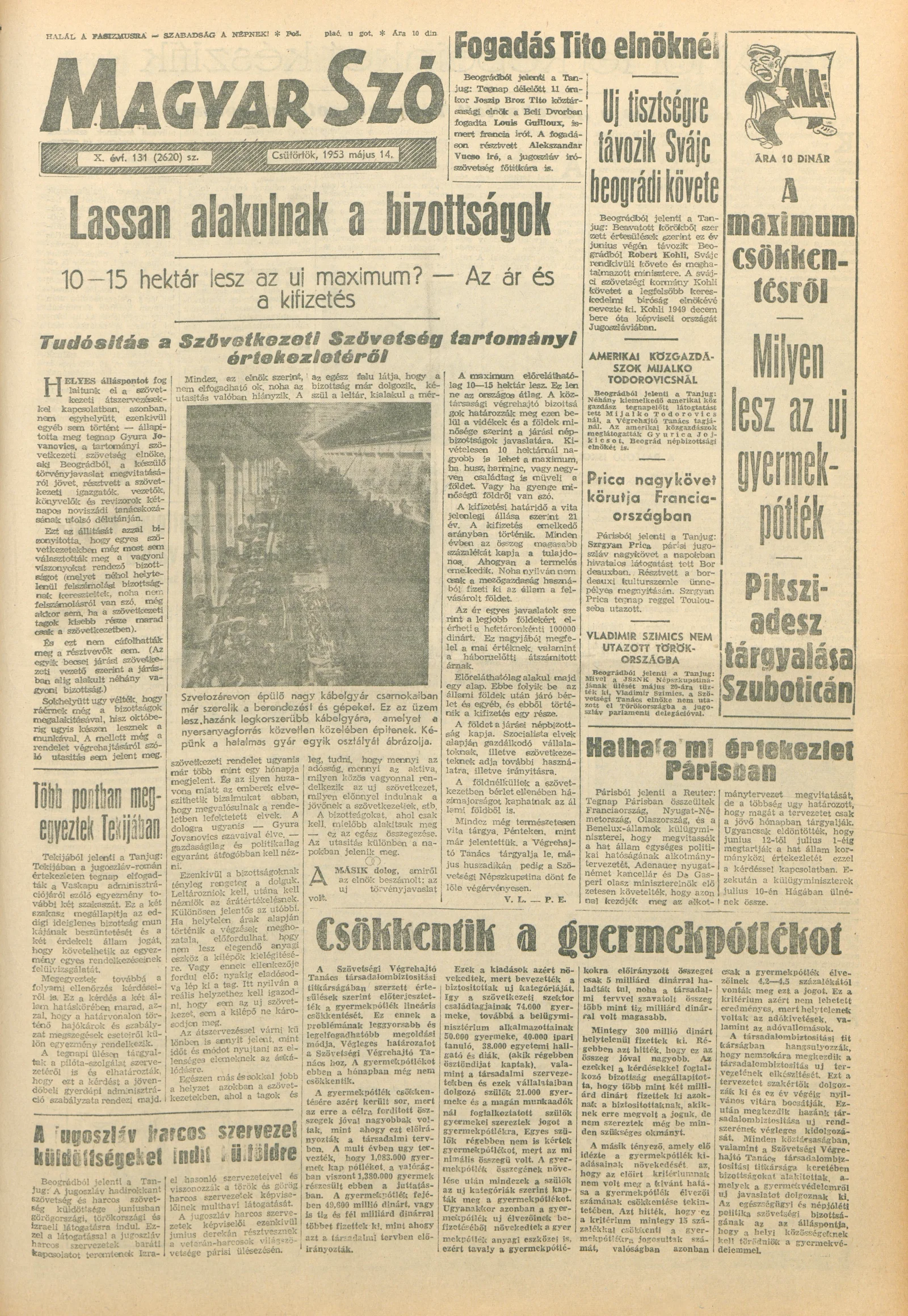 Magyar Szó, 10. évf. 1953. május 14. 131. sz. 1–12. oldal