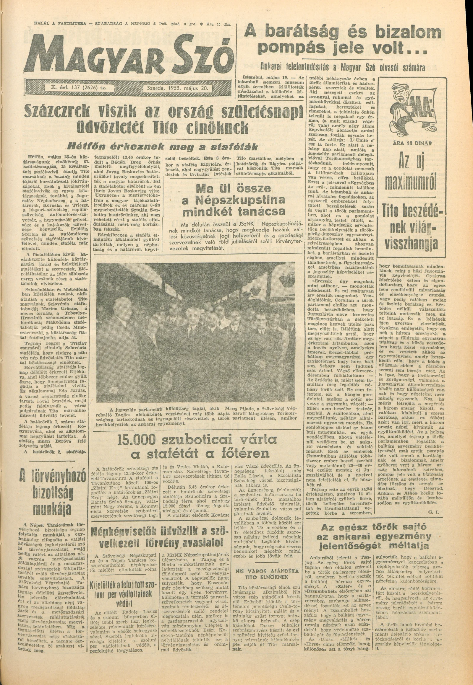 Magyar Szó, 10. évf. 1953. május 20. 137. sz. 1–10. oldal