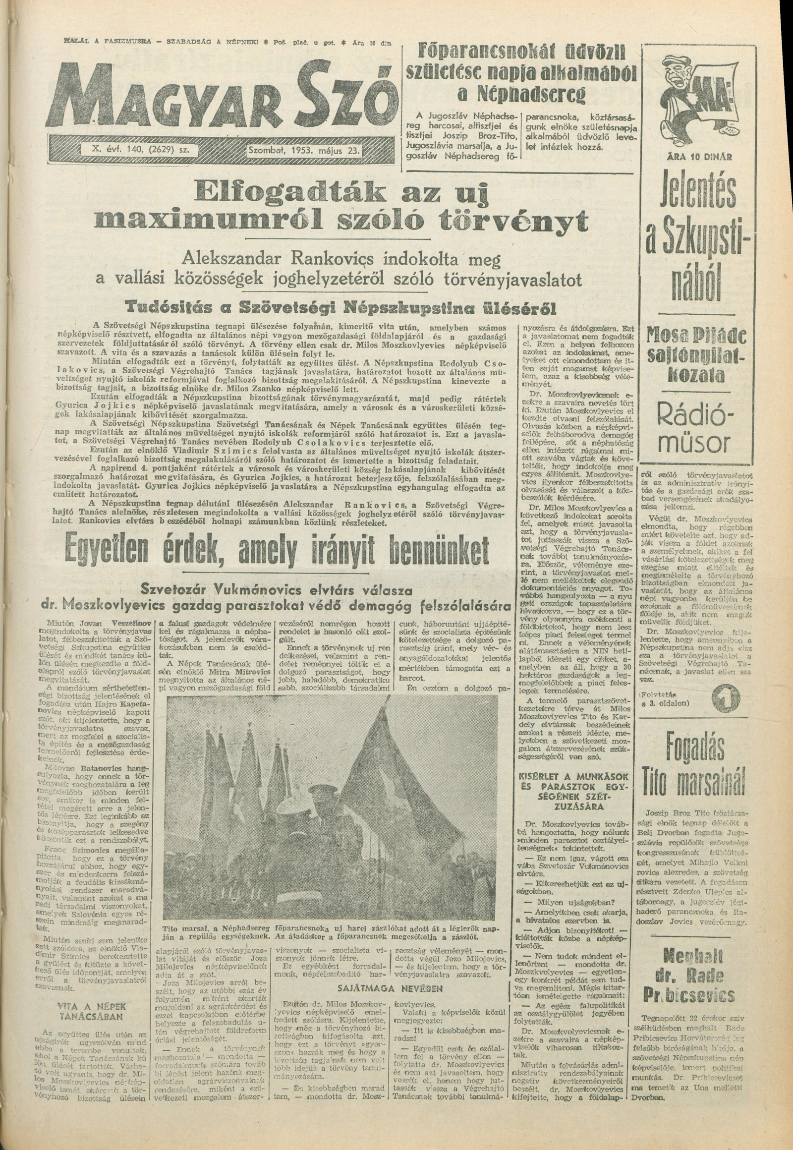 Magyar Szó, 10. évf. 1953. május 23. 140. sz. 1–10. oldal