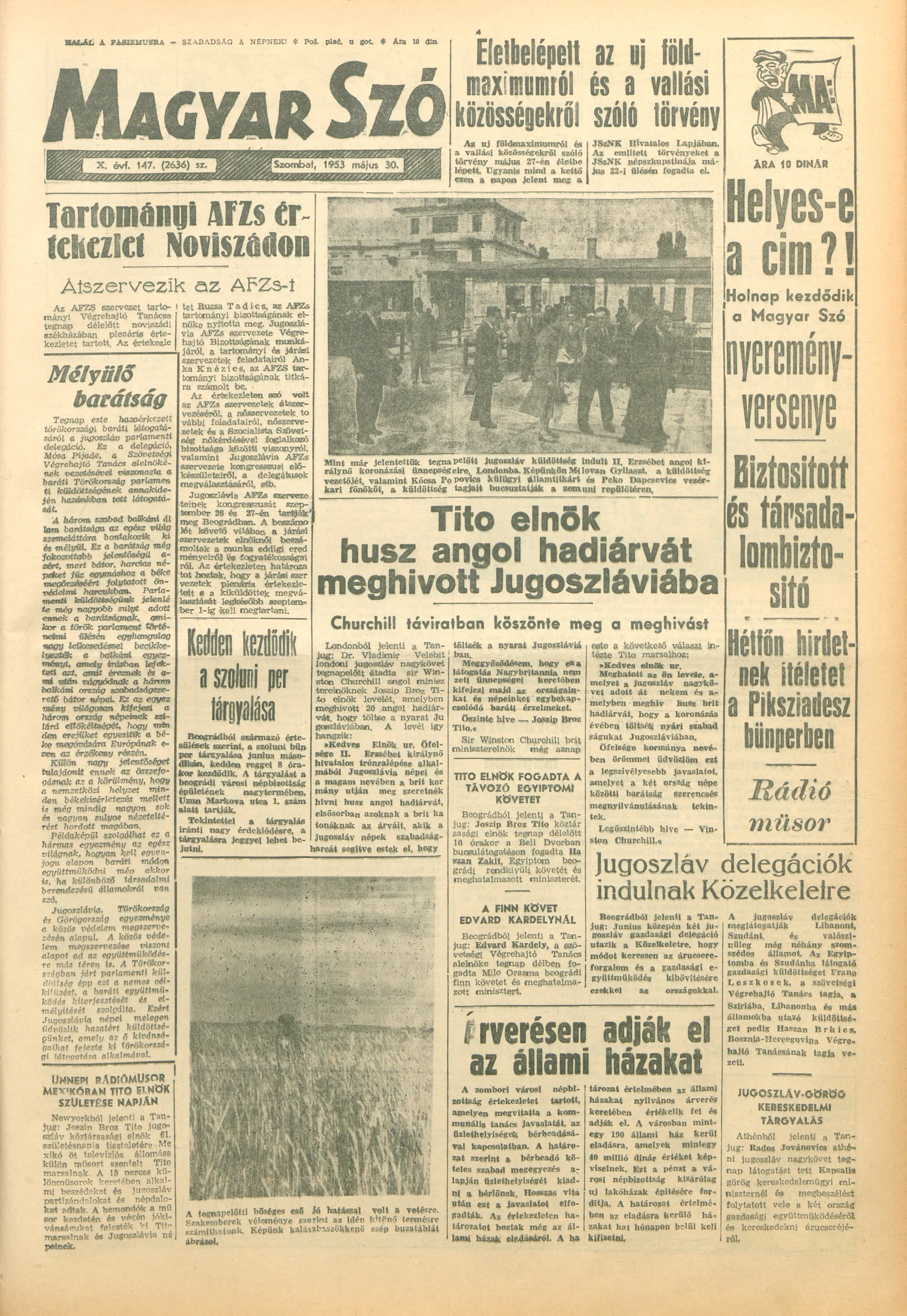 Magyar Szó, 10. évf. 1953. május 30. 147. sz. 1–10. oldal