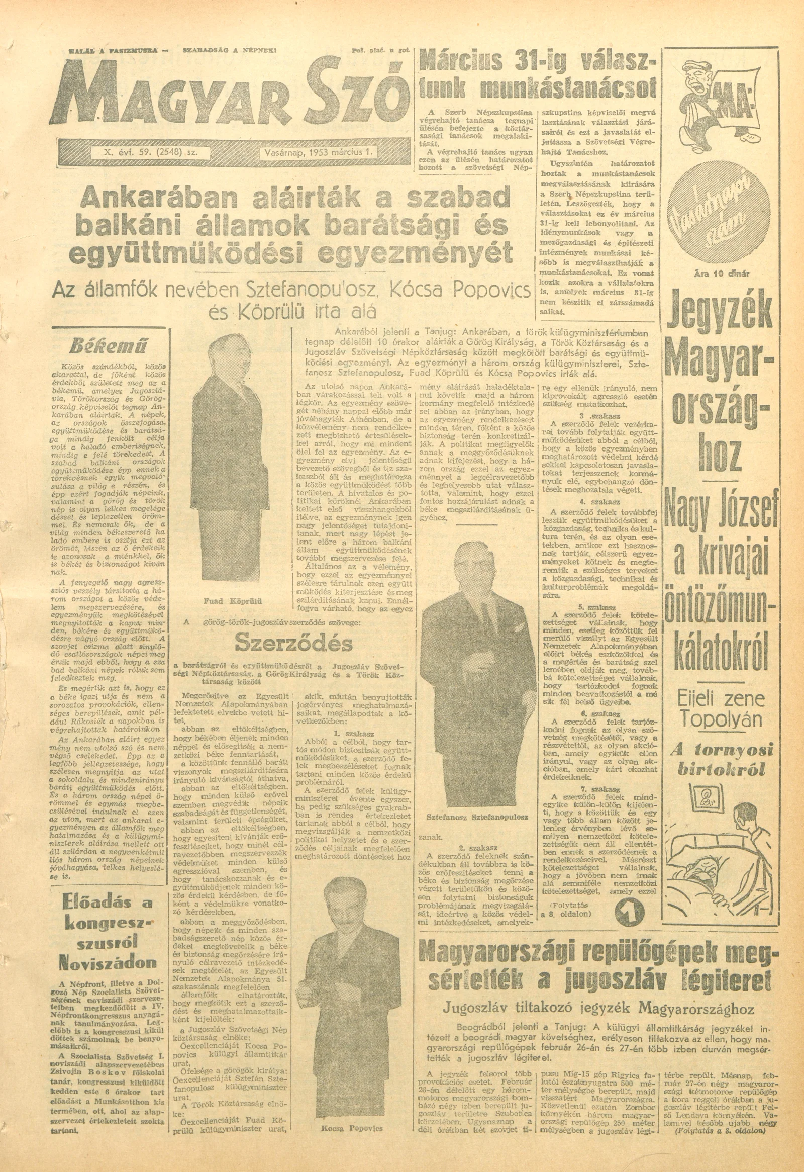 Magyar Szó, 10. évf. 1953. március 1. 59. sz. 1–14. oldal