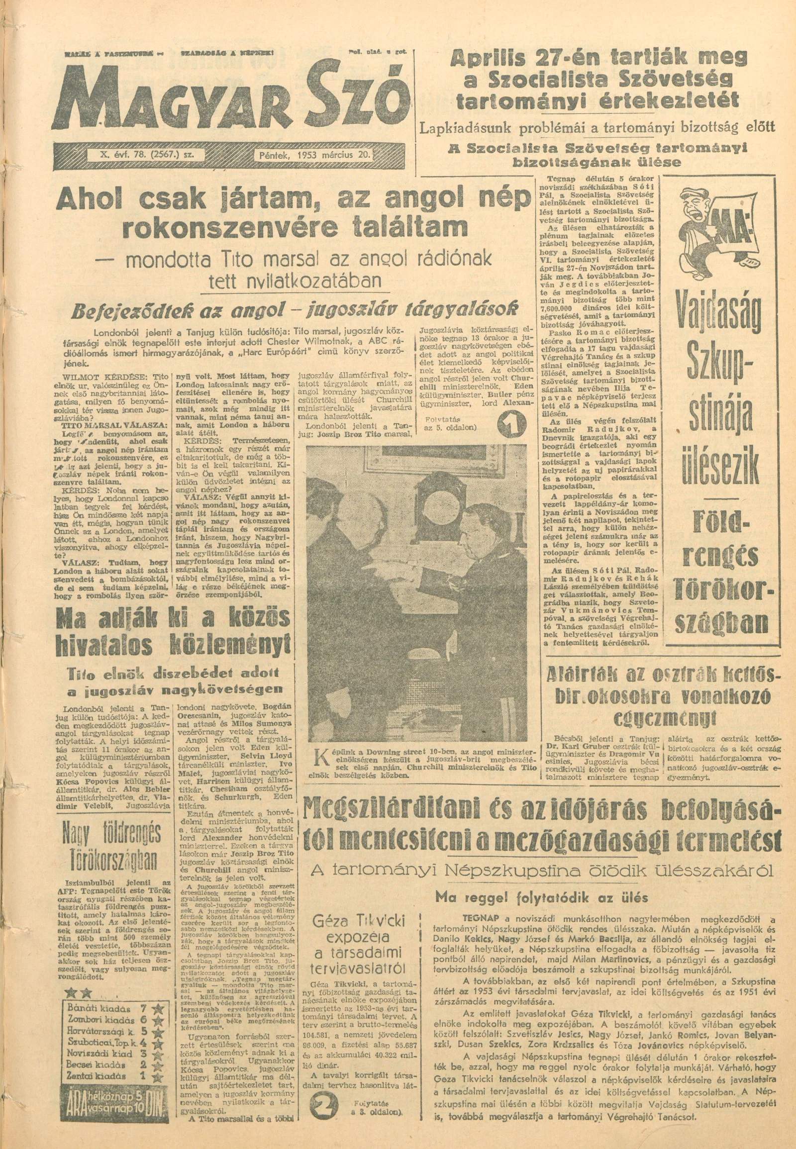 Magyar Szó, 10. évf. 1953. március 20. 78. sz. 1–10. oldal