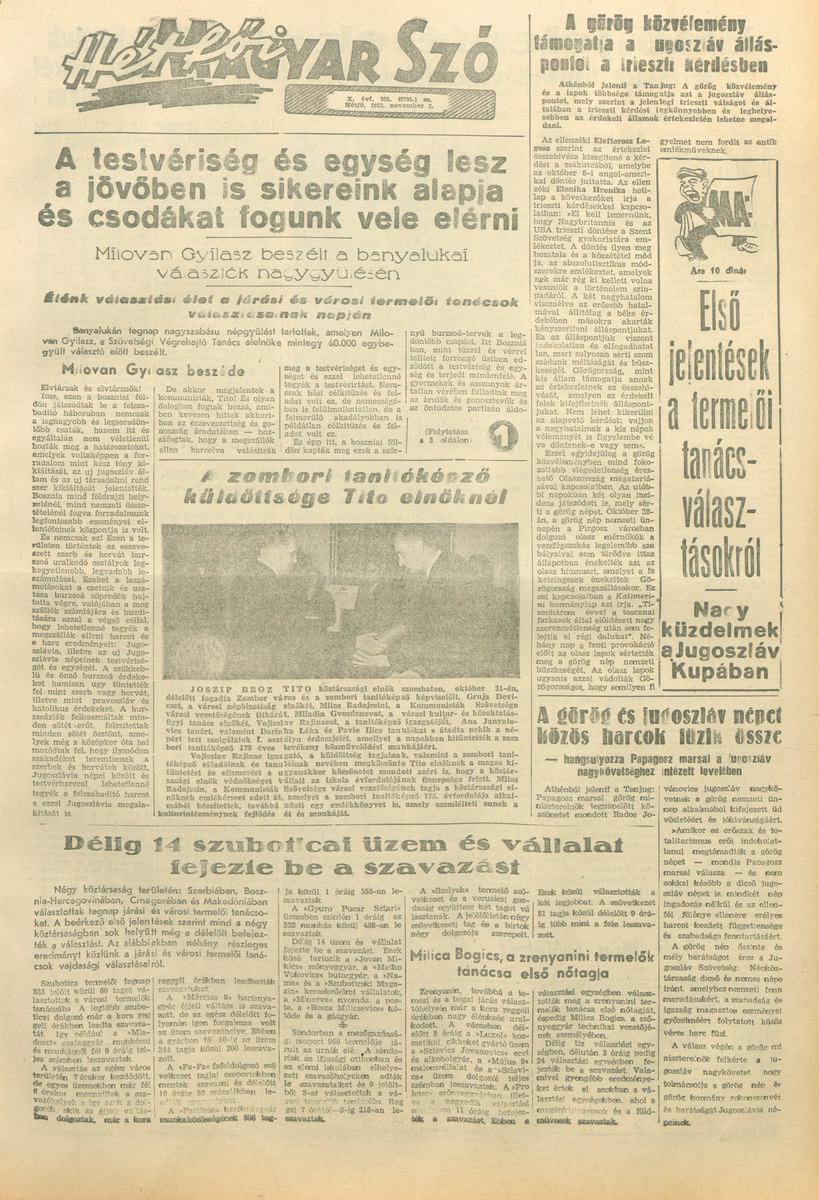 Magyar Szó, 10. évf. 1953. november 2. 302. sz. 1–8. oldal