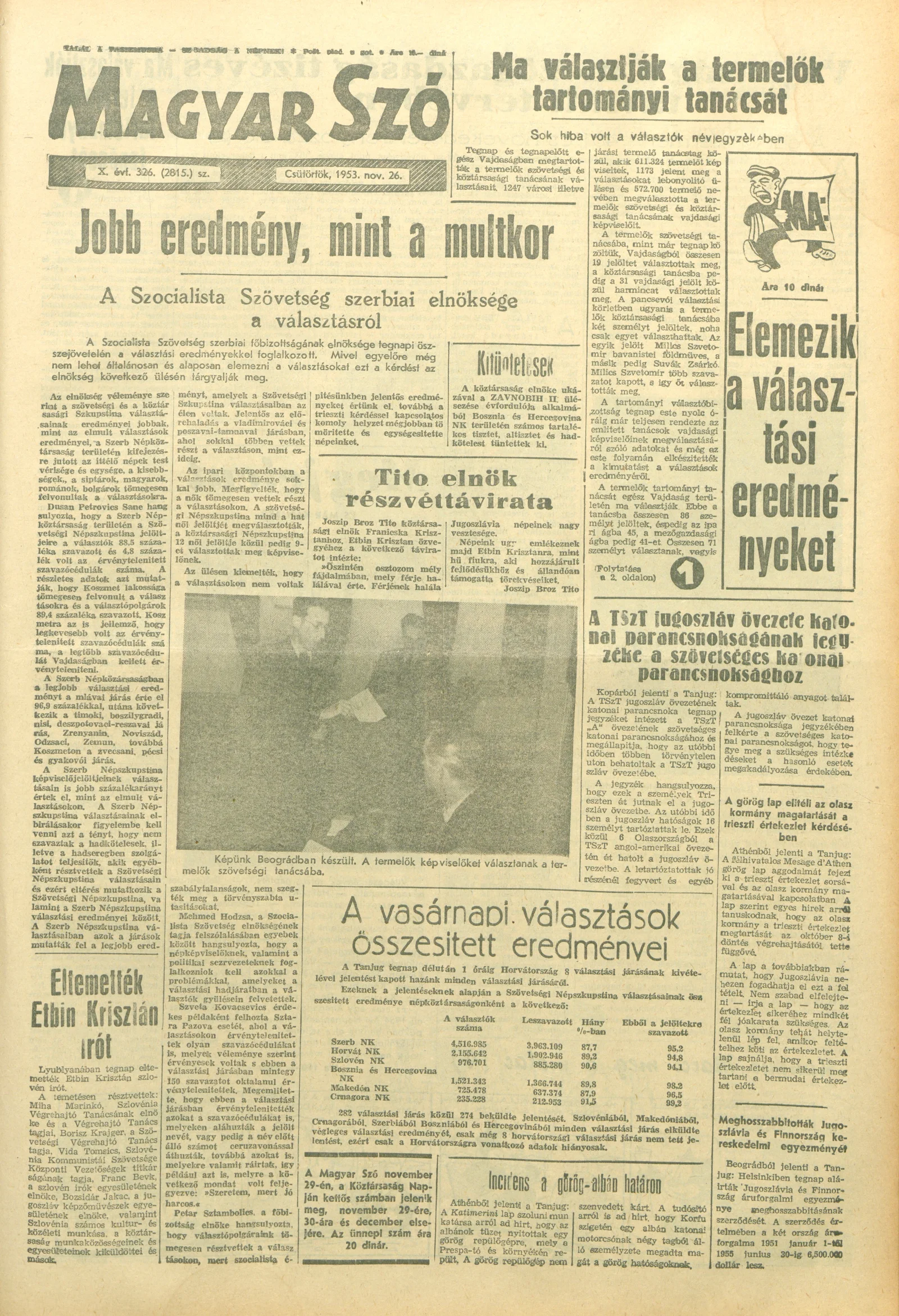Magyar Szó, 10. évf. 1953. november 26. 326. sz. 1–10. oldal