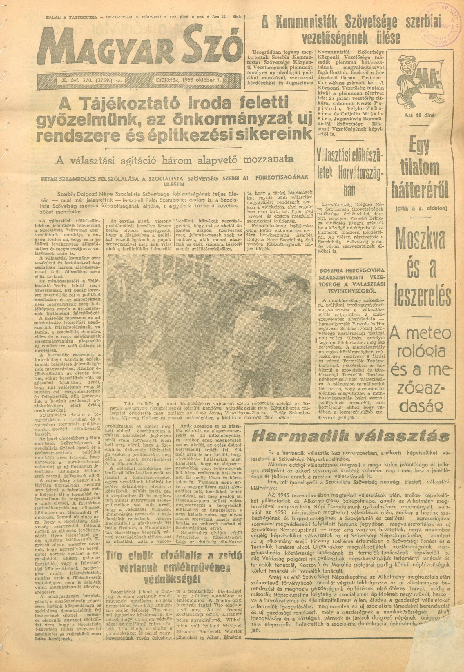 Magyar Szó, 10. évf. 1953. október 1. 270. sz. 1–10. oldal