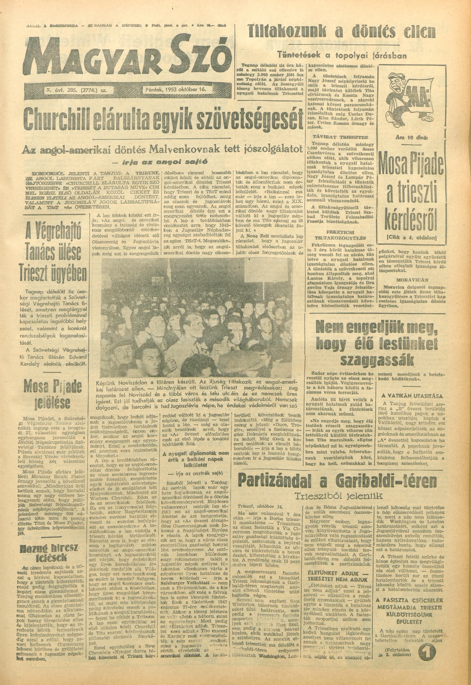 Magyar Szó, 10. évf. 1953. október 16. 285. sz. 1–10. oldal