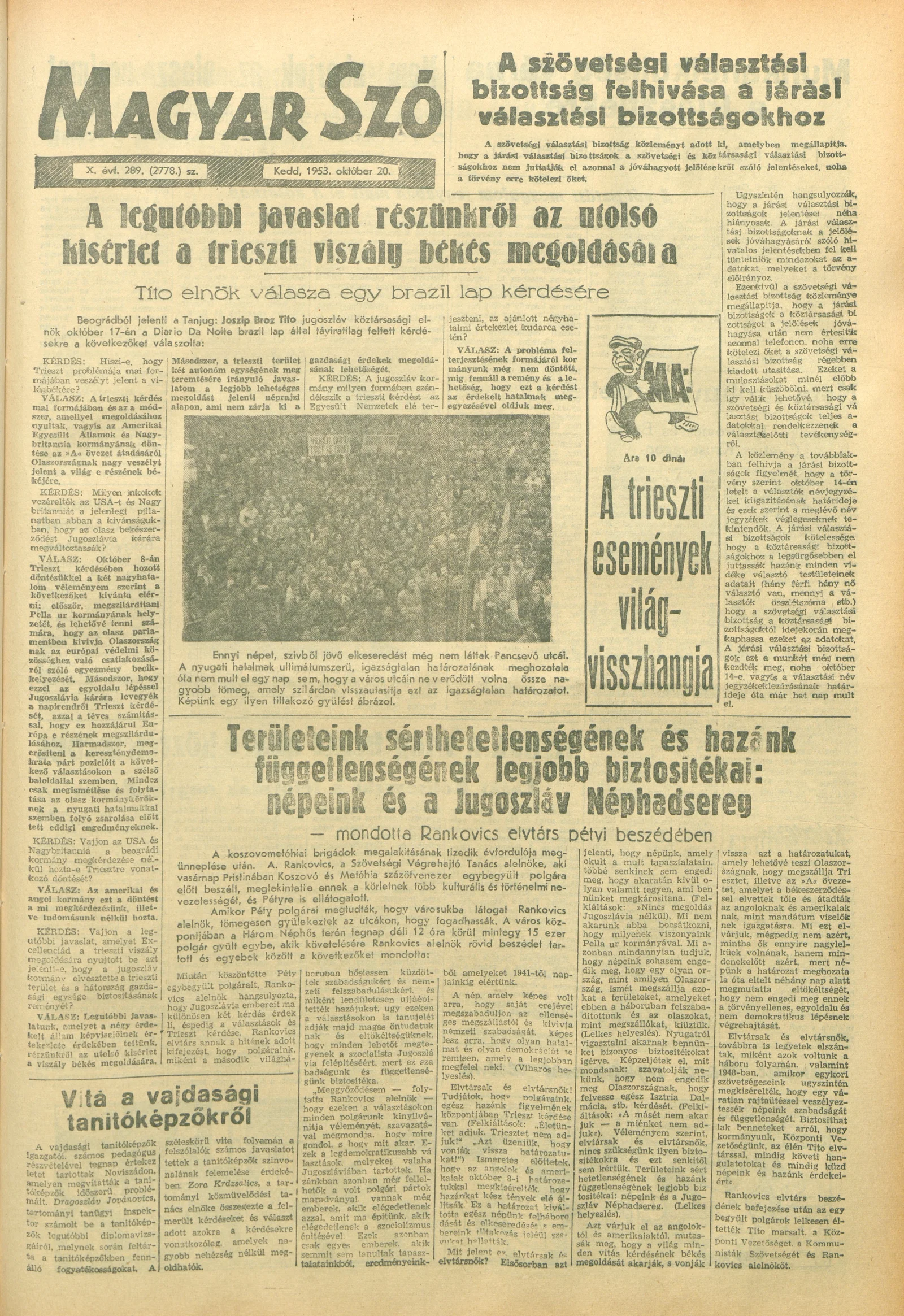 Magyar Szó, 10. évf. 1953. október 20. 289. sz. 1–8. oldal