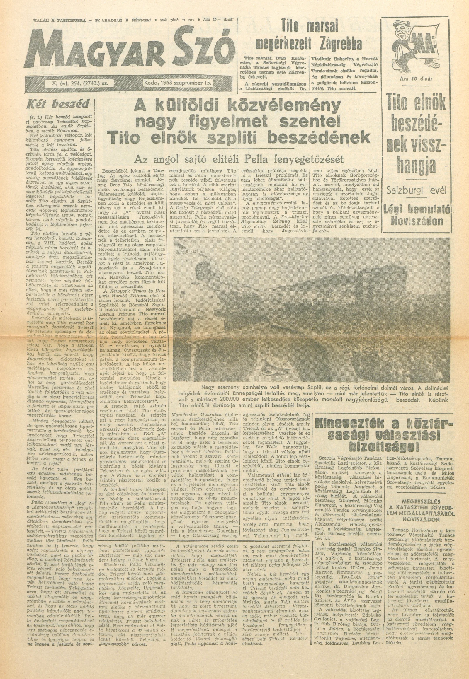 Magyar Szó, 10. évf. 1953. szeptember 15. 254. sz. 1–8. oldal