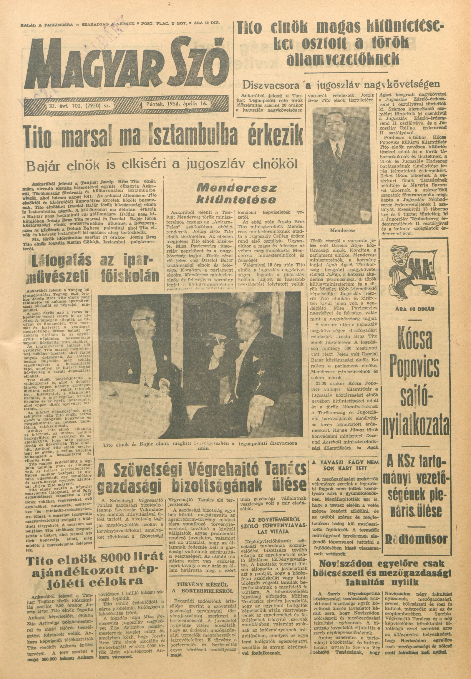 Magyar Szó, 11. évf. 1954. április 16. 102. sz. 1–10. oldal