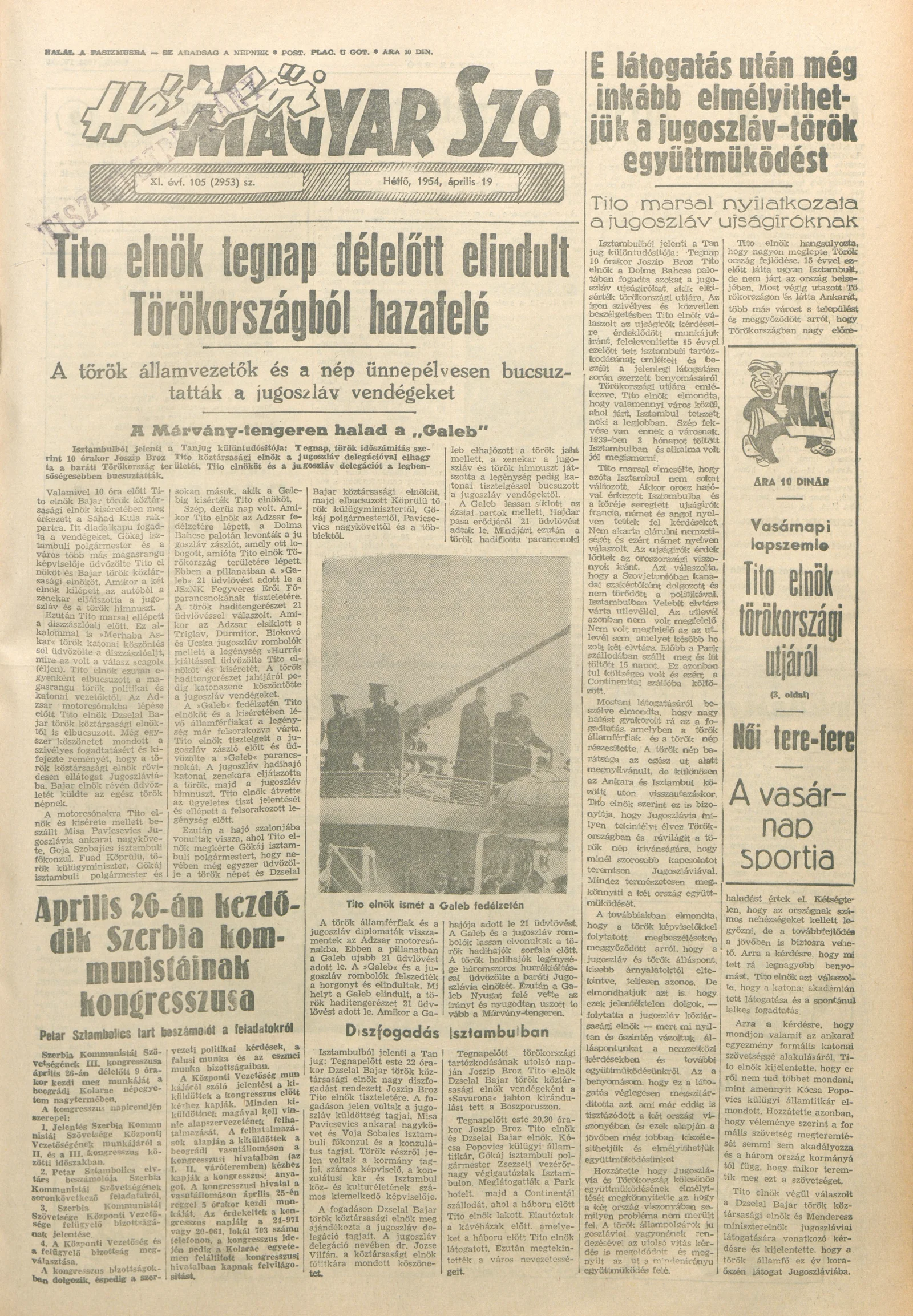 Magyar Szó, 11. évf. 1954. április 19. 105. sz. 1–8. oldal
