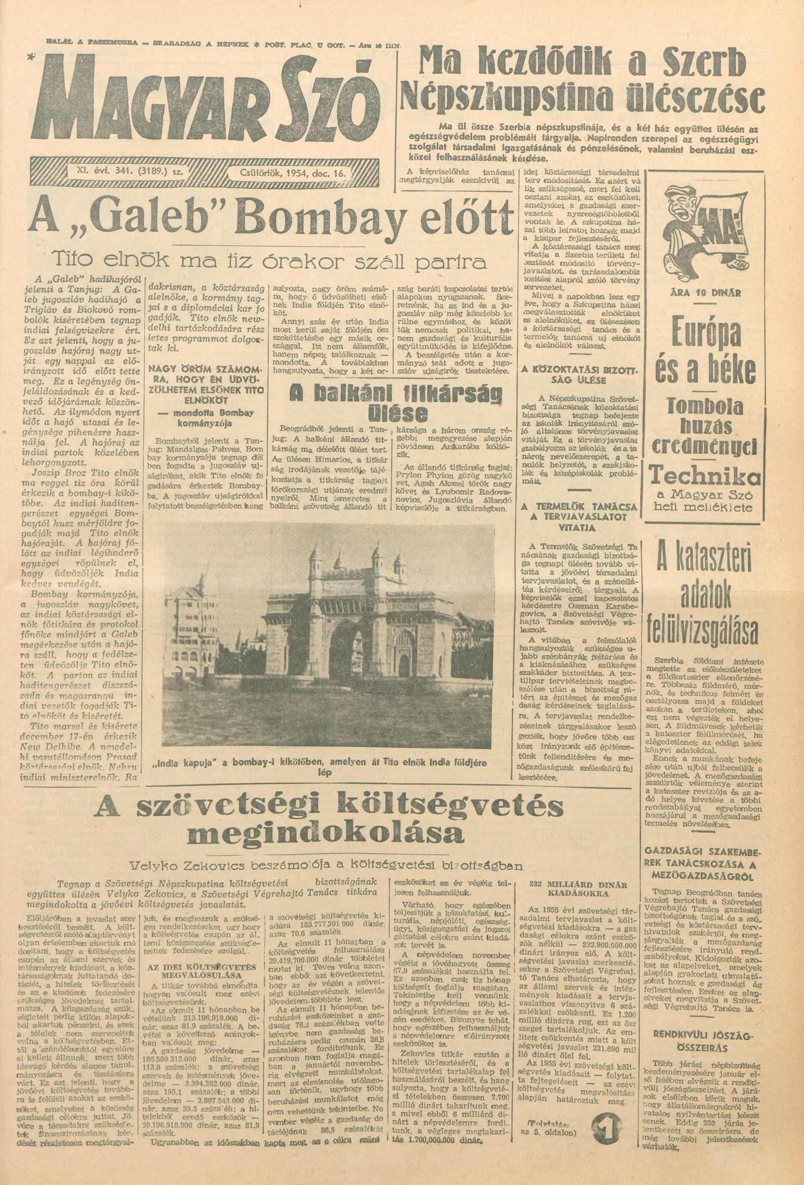 Magyar Szó, 11. évf. 1954. december 16. 341. sz. 1–12. oldal