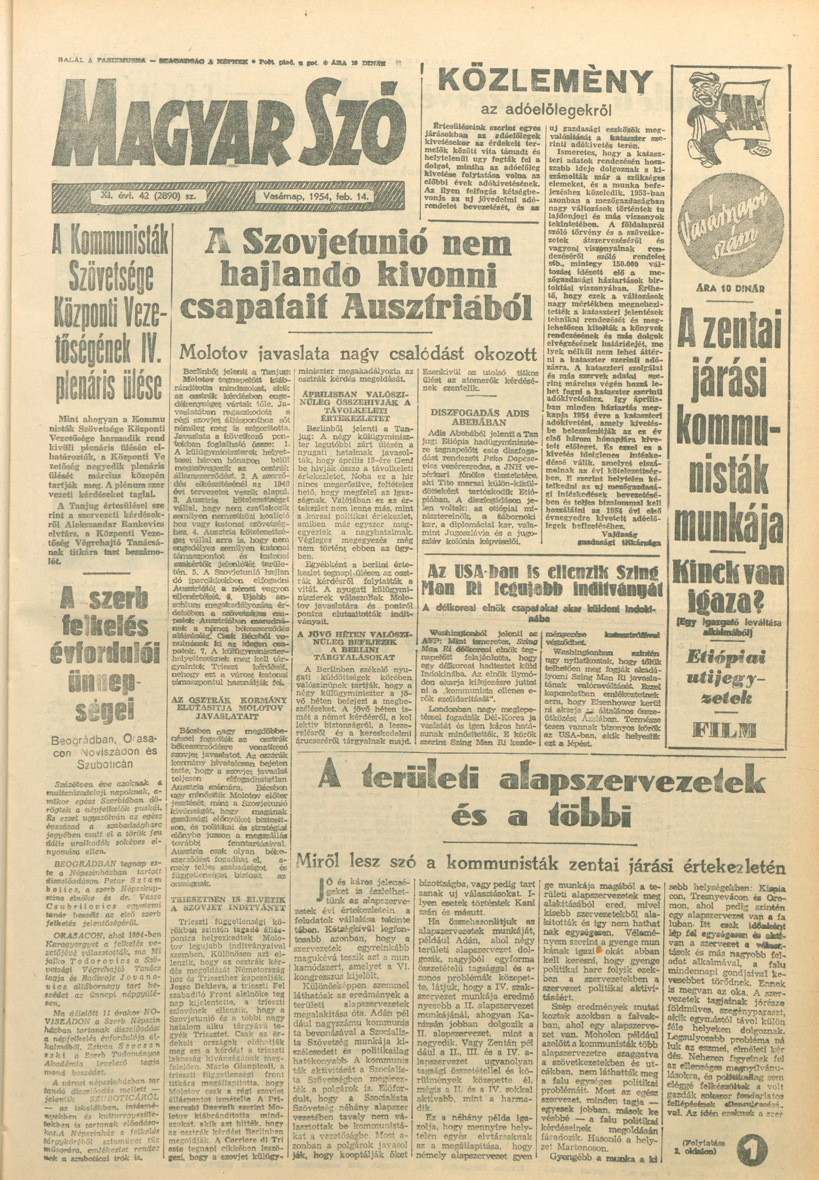 Magyar Szó, 11. évf. 1954. február 14. 42. sz. 1–10. oldal