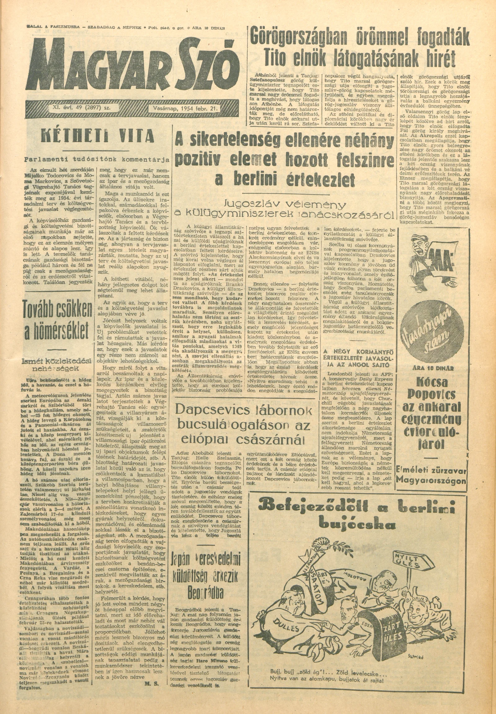 Magyar Szó, 11. évf. 1954. február 21. 49. sz. 1–10. oldal