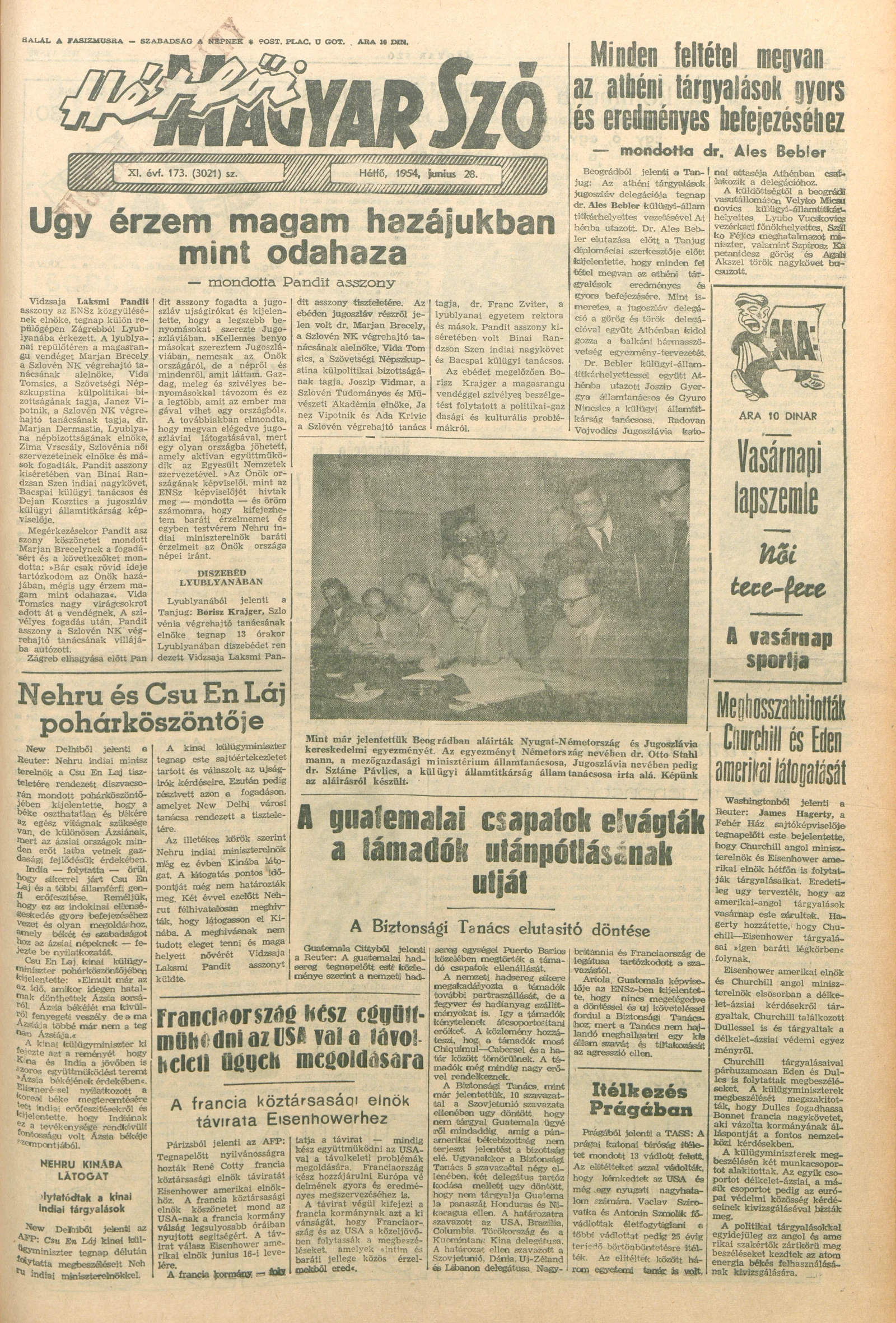 Magyar Szó, 11. évf. 1954. június 28. 173. sz. 1–6. oldal