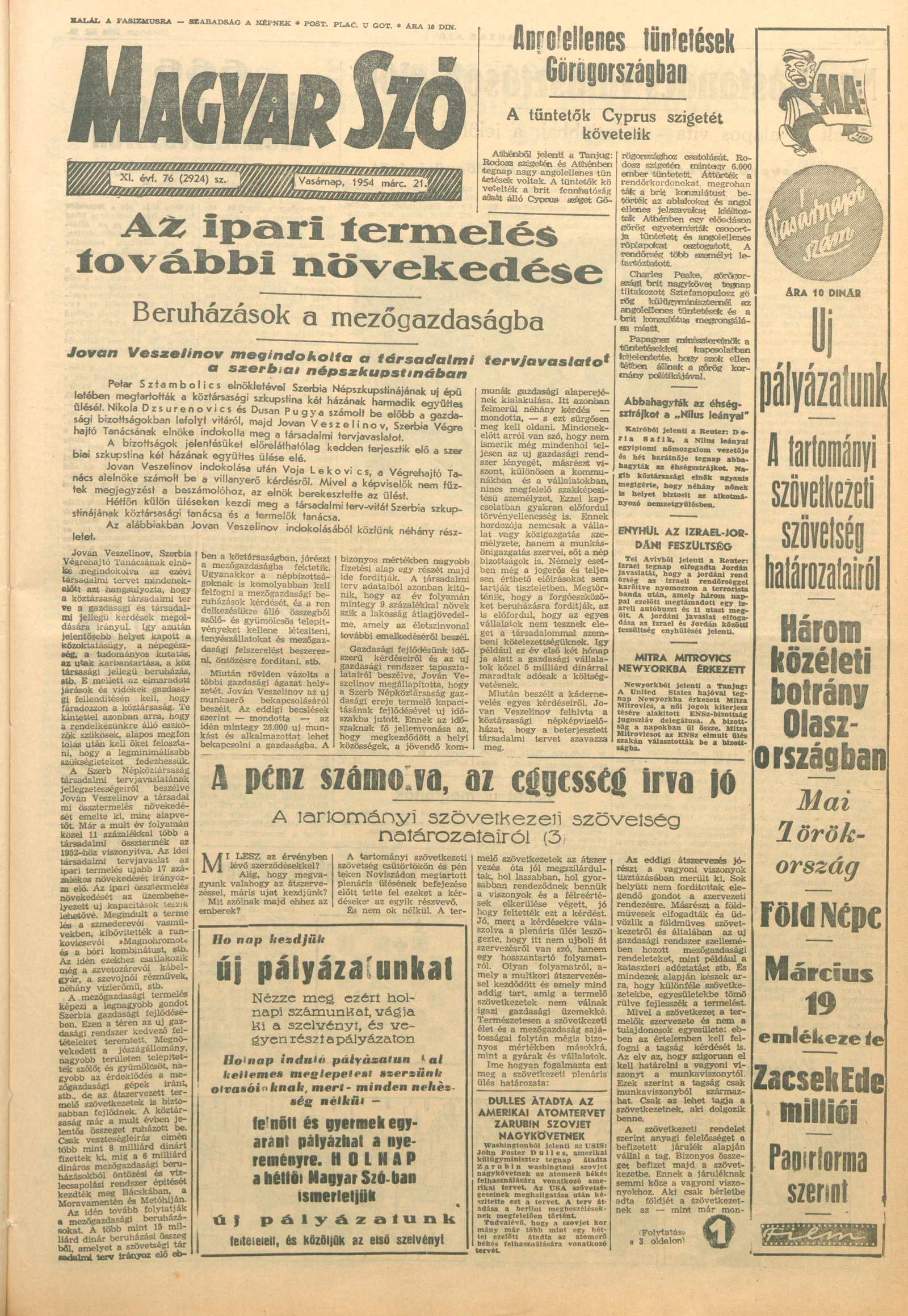 Magyar Szó, 11. évf. 1954. március 21. 76. sz. 1–14. oldal