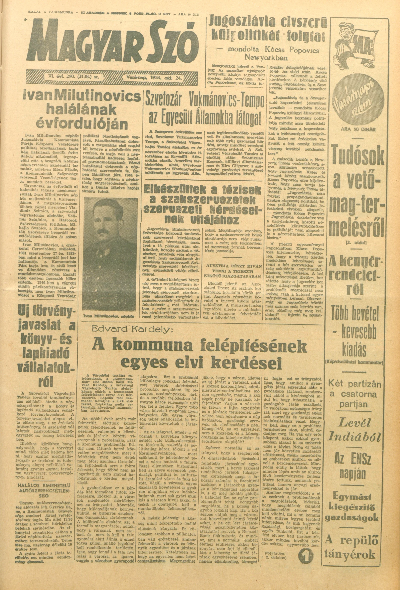 Magyar Szó, 11. évf. 1954. október 24. 290. sz. 1–14. oldal