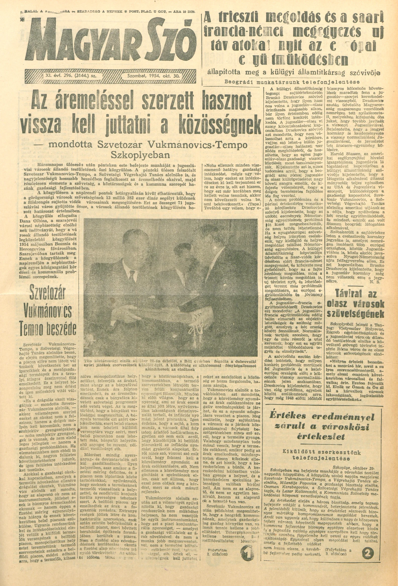 Magyar Szó, 11. évf. 1954. október 30. 296. sz. 1–8. oldal