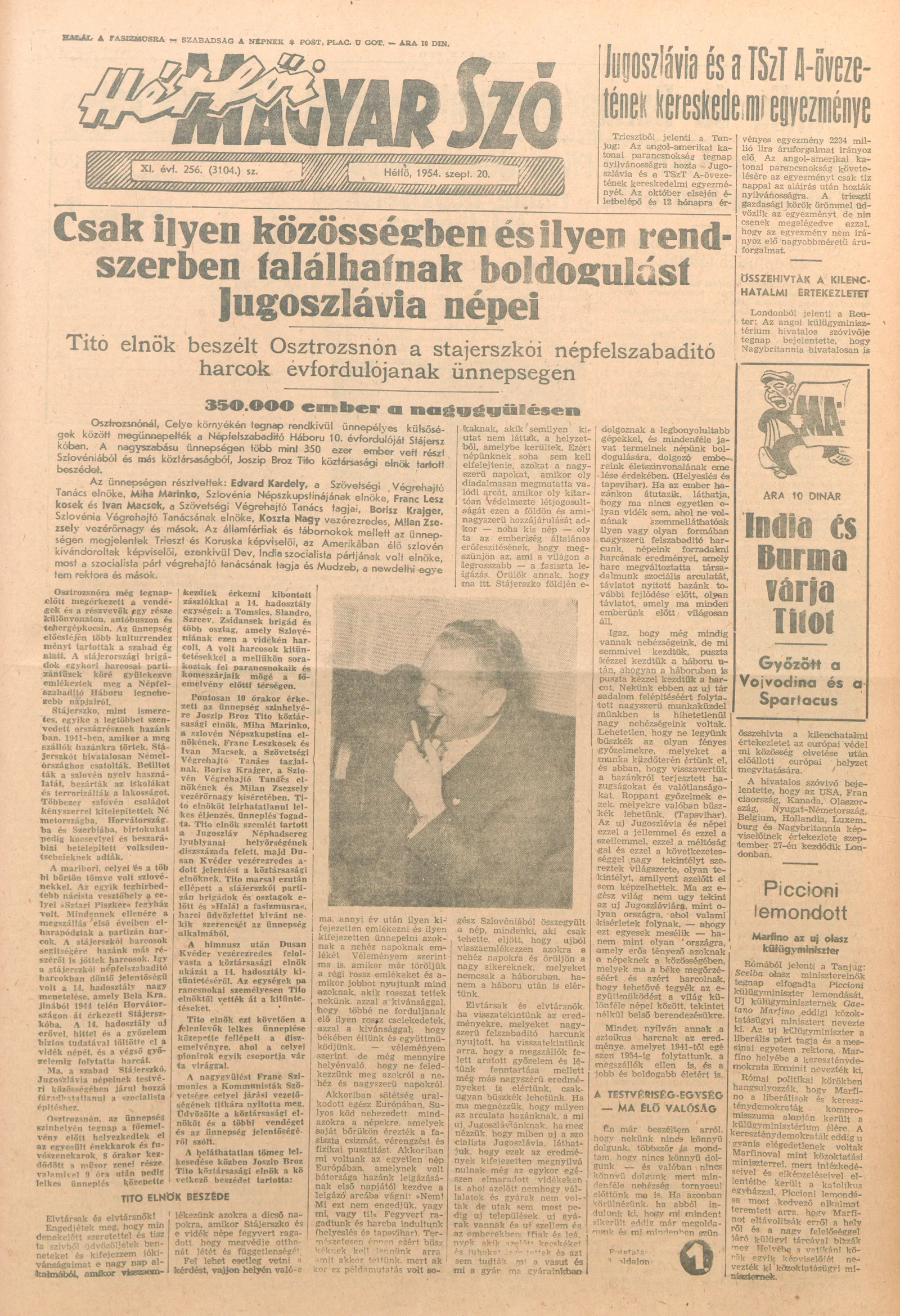 Magyar Szó, 11. évf. 1954. szeptember 20. 256. sz. 1–6. oldal