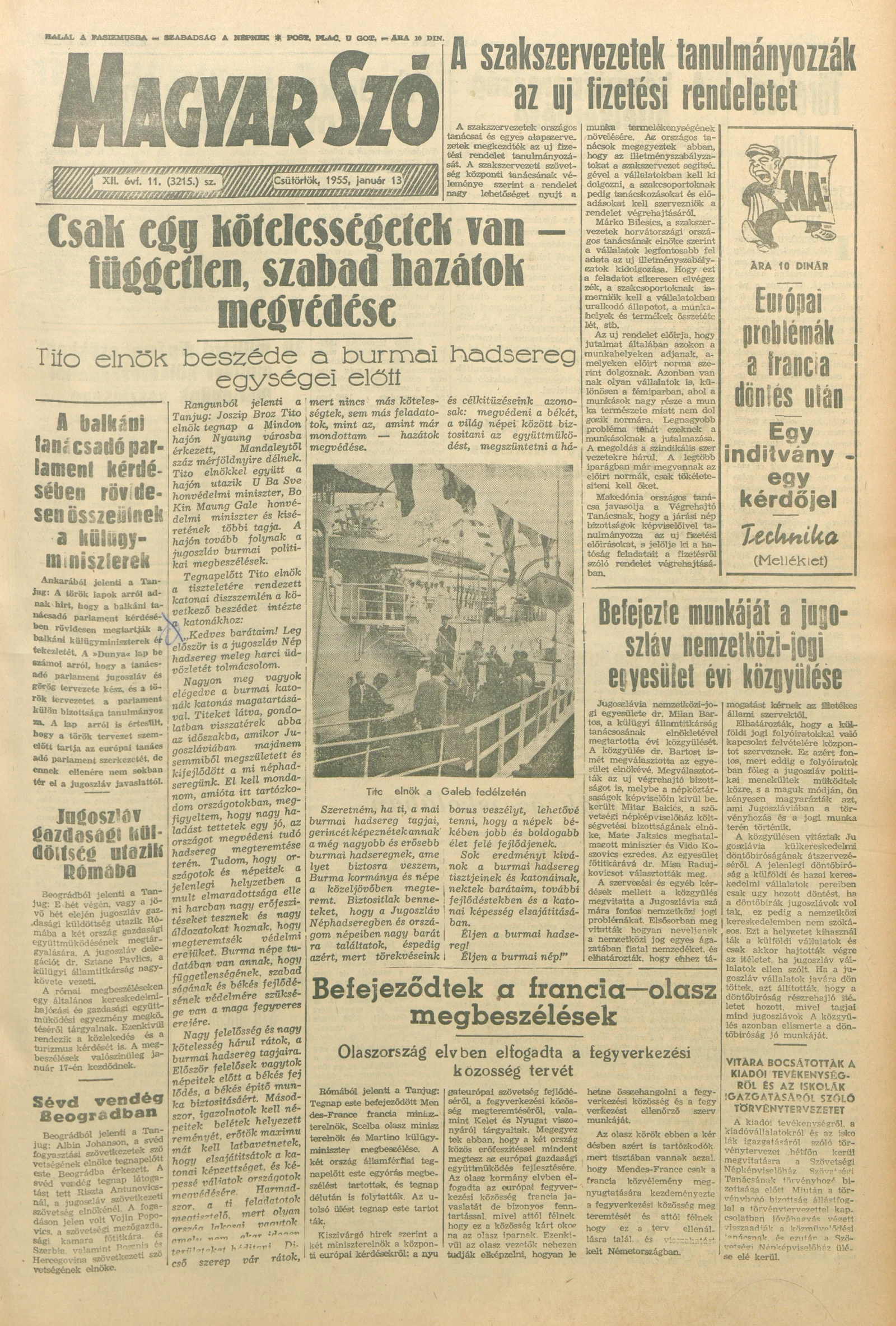 Magyar Szó, 12. évf. 1955. január 13. 11. sz. 1–12. oldal