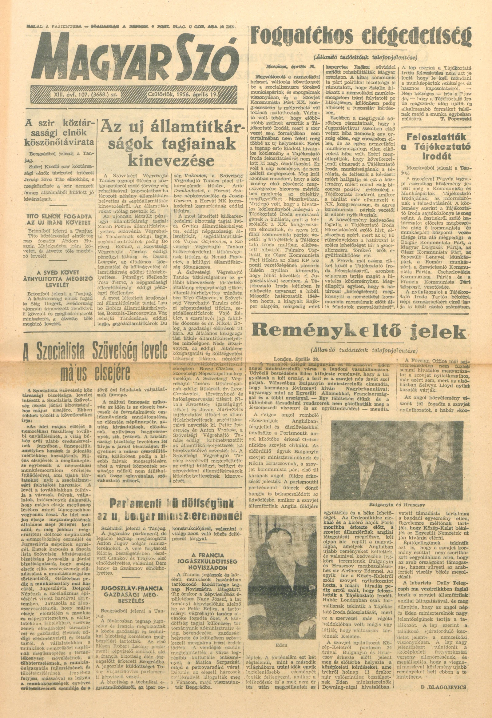 Magyar Szó, 13. évf. 1956. április 19. 107. sz. 1–8. oldal