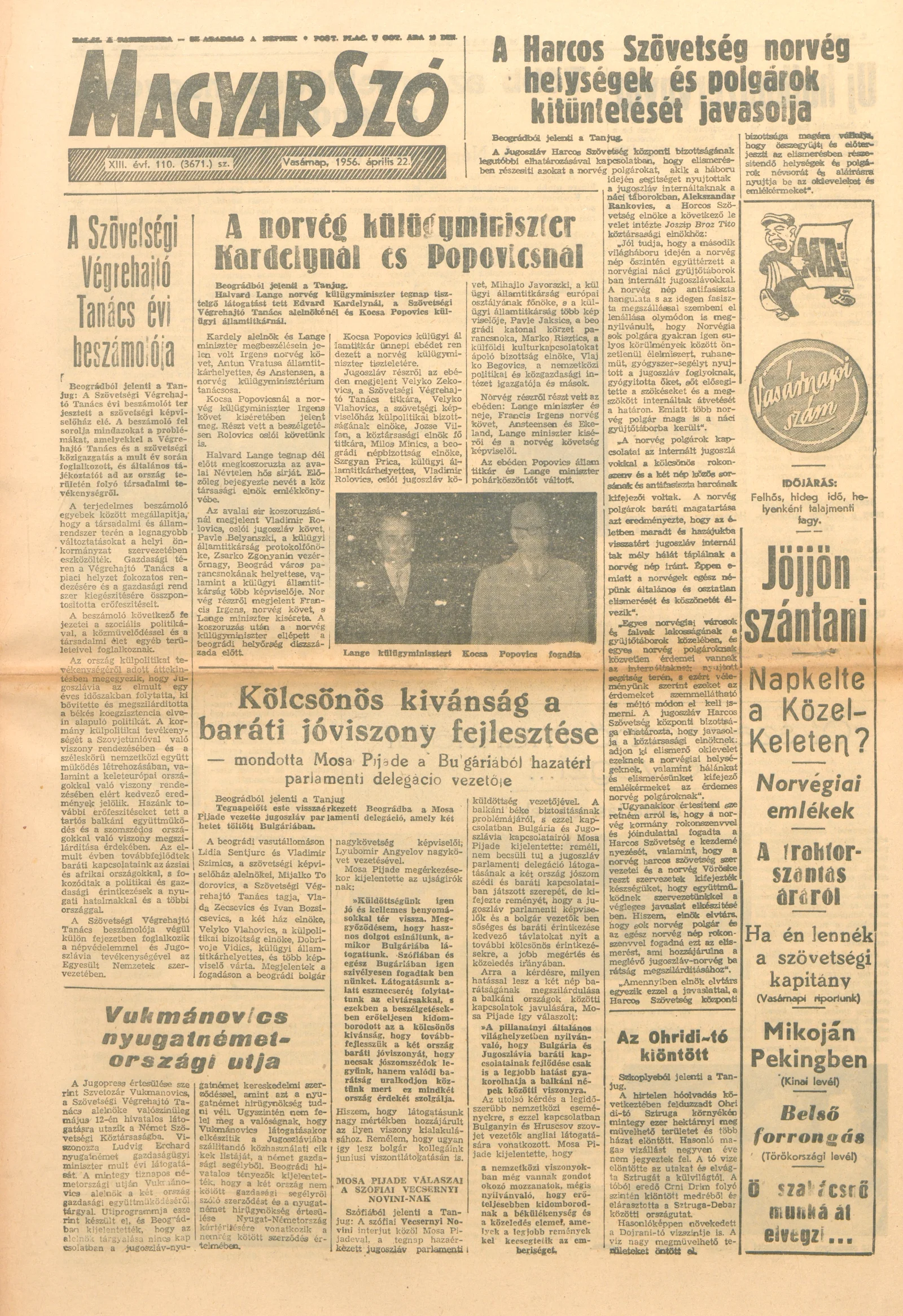 Magyar Szó, 13. évf. 1956. április 22. 110. sz. 1–20. oldal