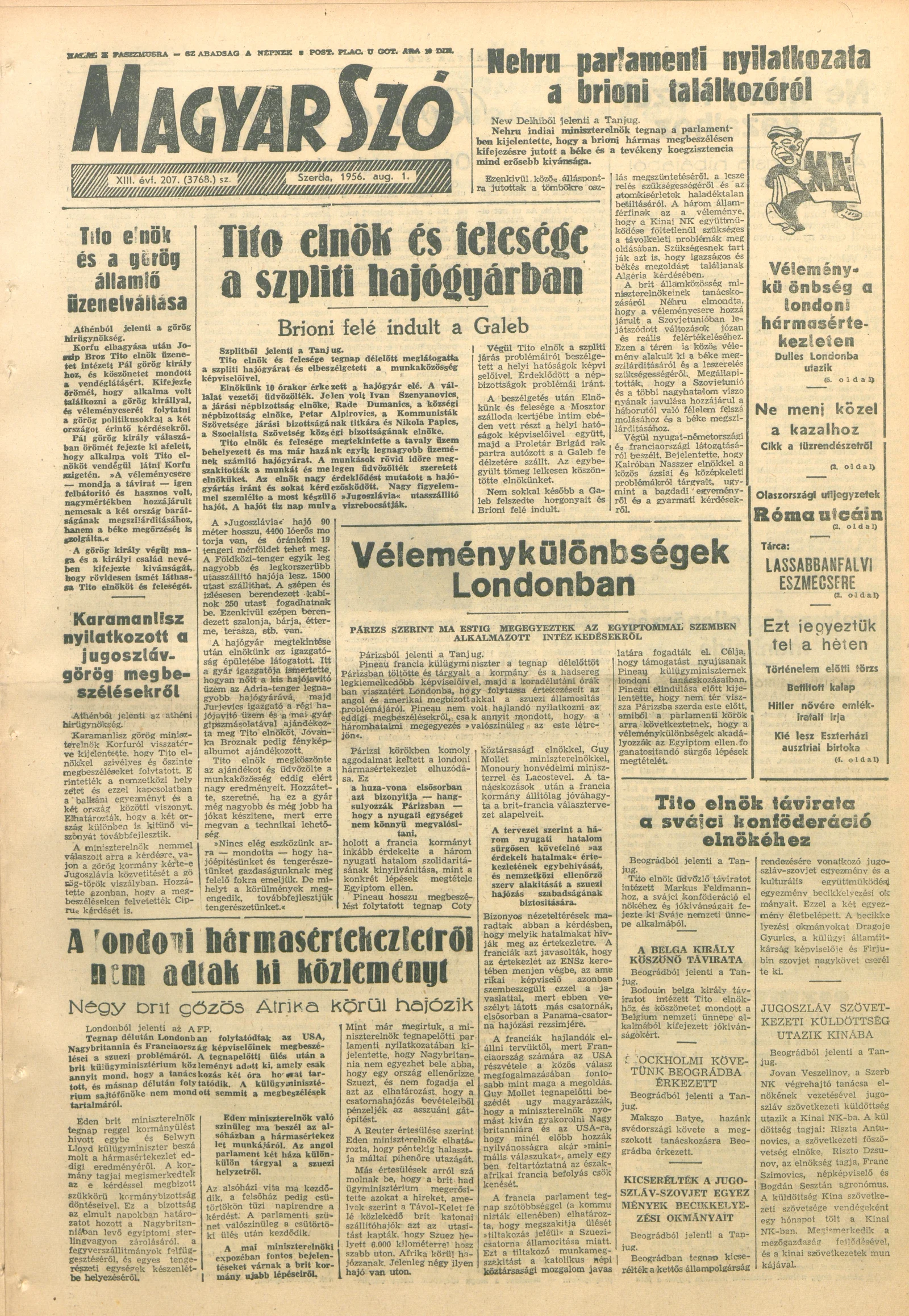 Magyar Szó, 13. évf. 1956. augusztus 1. 207. sz. 1–8. oldal