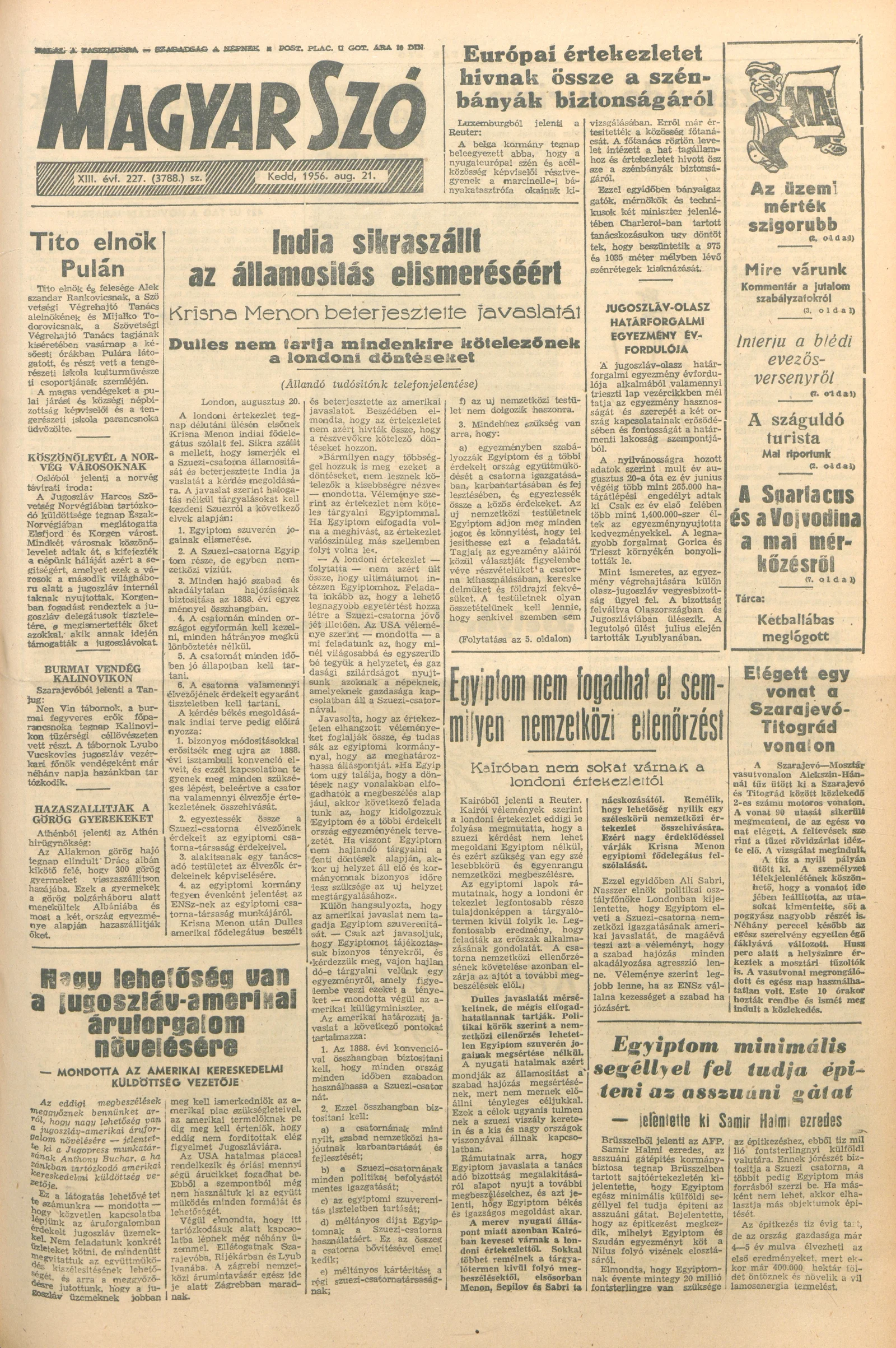 Magyar Szó, 13. évf. 1956. augusztus 21. 227. sz. 1–8. oldal
